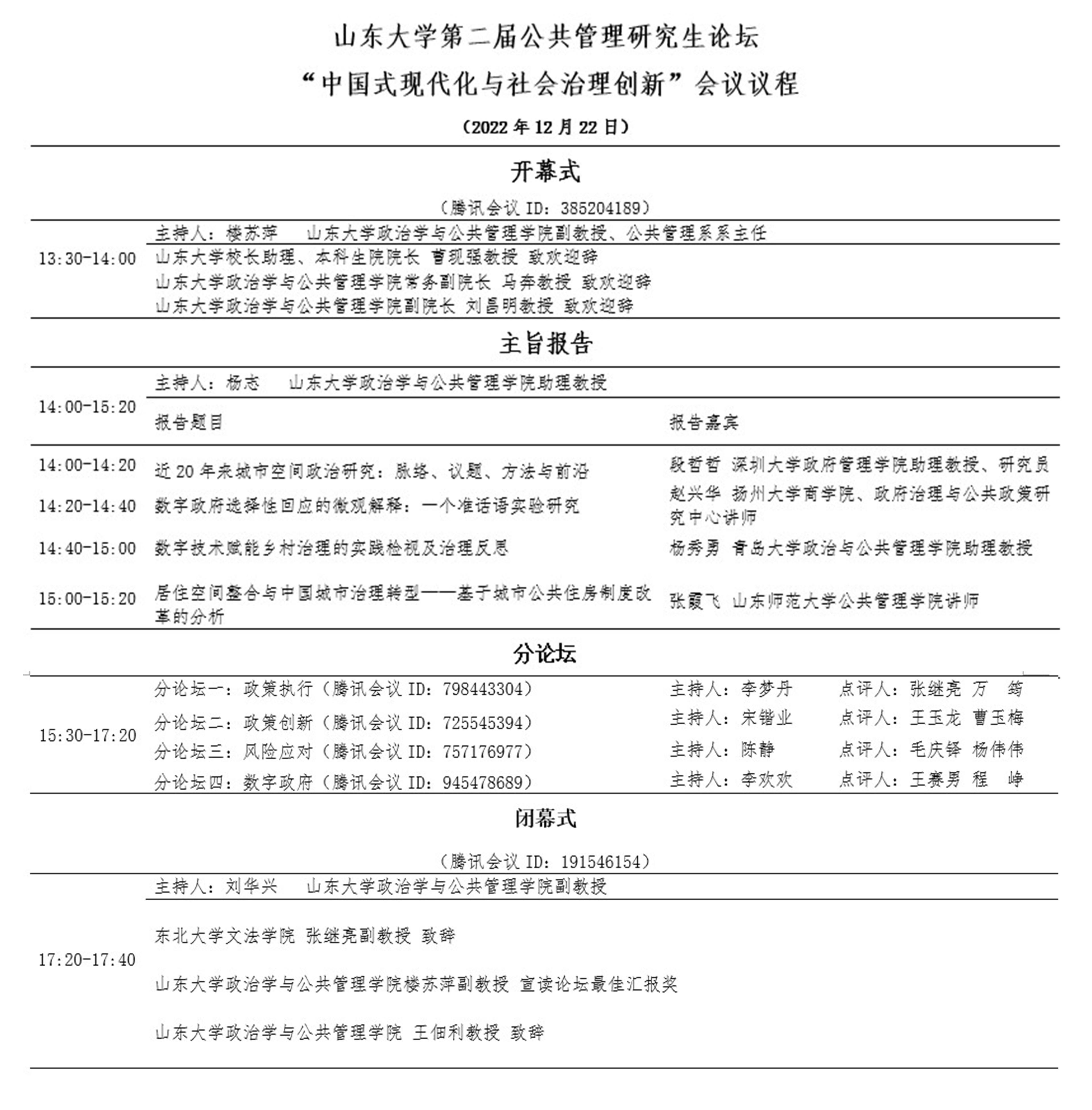 山东大学公共管理研究生论坛会务组