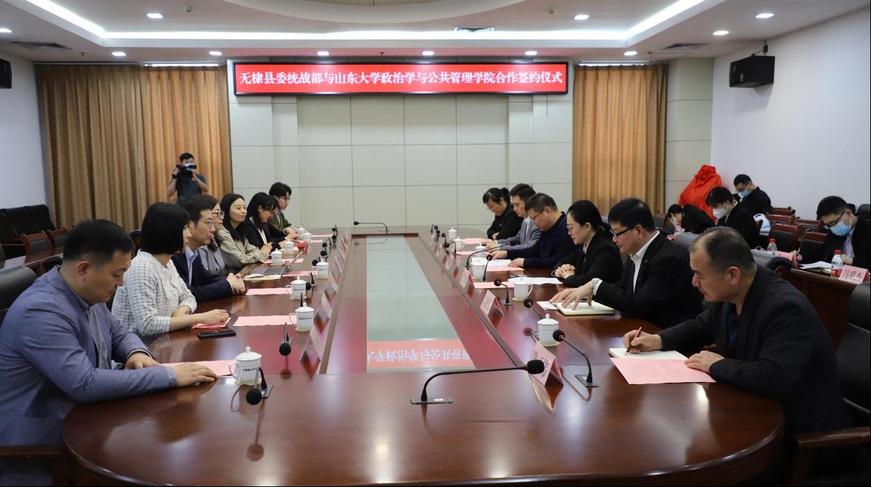 3月10日下午,双方在无棣县委政府举行签约仪式。首先由无棣县委副书记王福瑞致欢迎辞并介绍无棣县情况与区位产业优势,无棣县委常委、统战部部长、县政协党组副书记贾芳介绍了无棣县委统战工作开展情况。马桂兰副书记对学院学科、专业设置情况、近年来人才创新培养措施以及学院在服务山东、创新发展等方面取得的成效进行了介绍。学院根据人才培养和学科特点精准对接党委政府部门,也是为进一步扎实推进教育部“访企拓岗”促就业专项行动,落实落细学校“服务山东”战略。