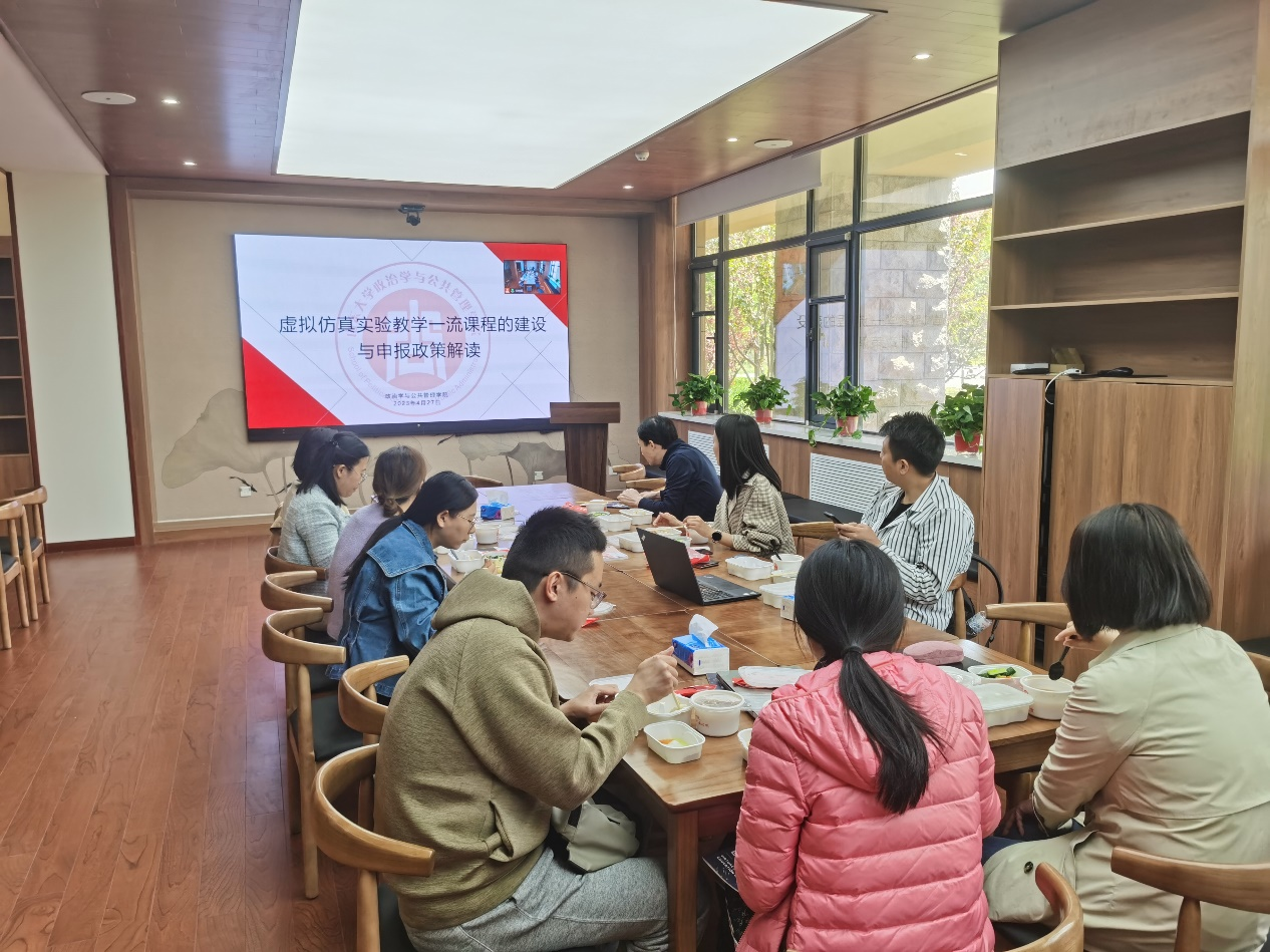 4月27日中午12点,政管学院虚拟仿真实验教学一流课程建设与申报政策解读专题培训会在华岗苑南楼一楼新时代美德书屋召开。本次专题培训邀请北京百朋索奇科技有限公司司蛟峰老师和青岛唯唯视界教育科技有限公司李洪伟老师主讲,会议由学院分管本科教学副院长赵婷老师主持,学院各专业十余名教师参加。