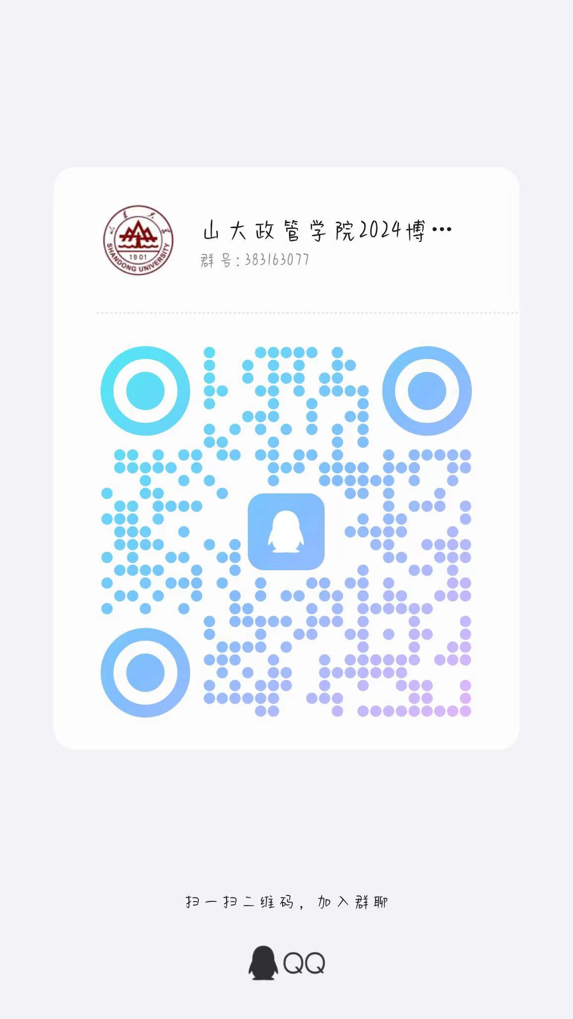 学院将组建考试QQ群(群号:383163077,二维码附后)。该群仅限进入初试(笔试)的考生本人进入(名单以学院公示名单为准),入群请提供“考生姓名+报考专业+考生身份证号码后六位”以等候验证。进群后,所有考生应将“群昵称”修改成“姓名+报考专业”。待所有考生入群后,我院将正式启用QQ群发布消息,请考生时刻关注群通知。