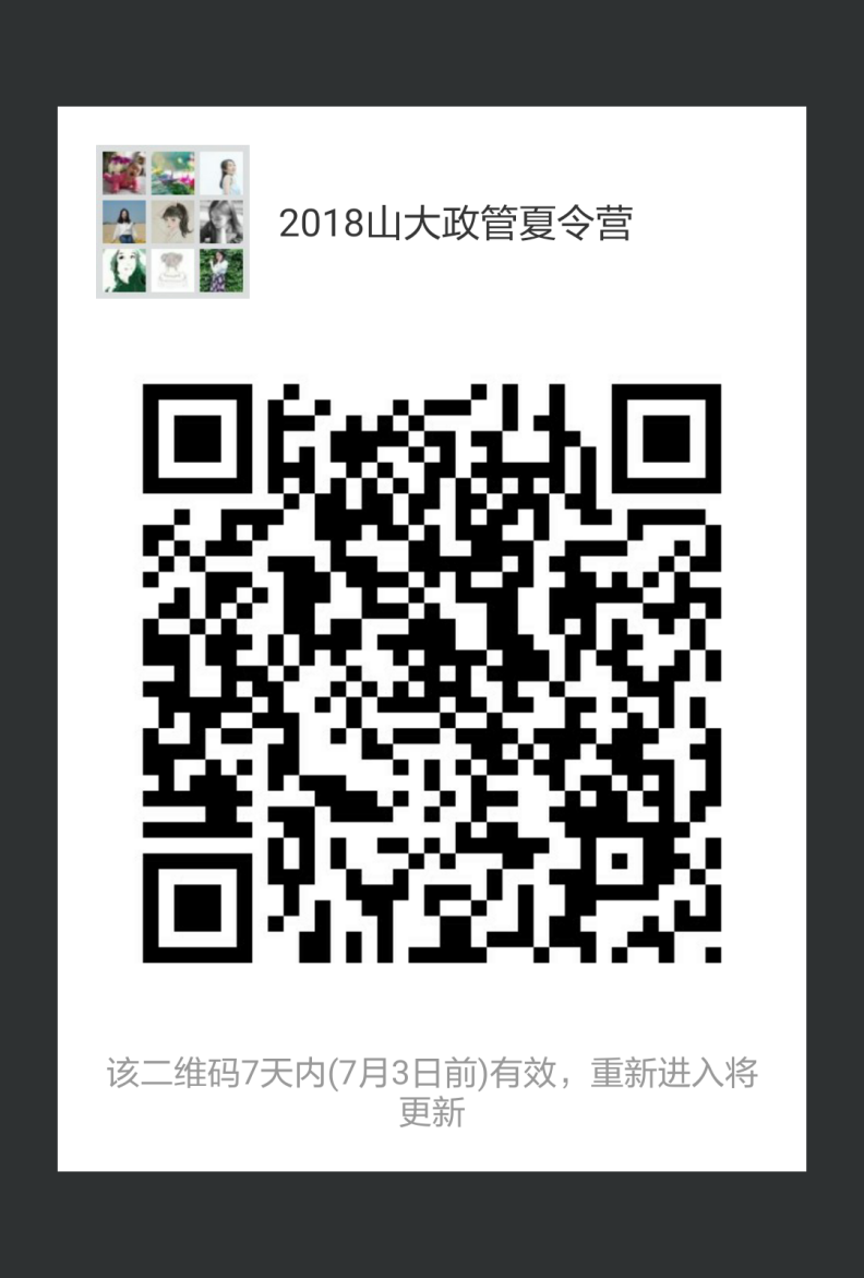 请入营同学加入“2018山大政管夏令营”群聊,后续通知将在群里发布,入群同学请修改备注名为“姓名-报考专业”,例如“xxx-行政管理”。