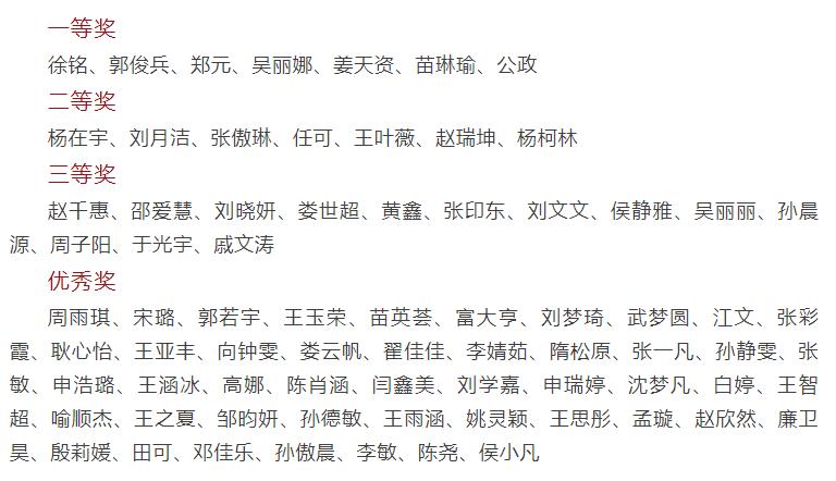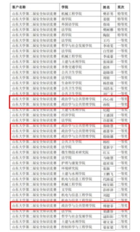 1、在304永利集团官网入口第二届安全知识竞赛暨第五届消防安全知识竞赛中,我院冯心雨、孙悦等同学获一等奖,付健菲、刘小娜等同学获二等奖,李兆欣、李丽等同学获三等奖;在山大研究生学术行为规范知识竞赛中,我院周雨琪、李贵香、杨歆琦等同学获三等奖,部分同学获优秀奖;