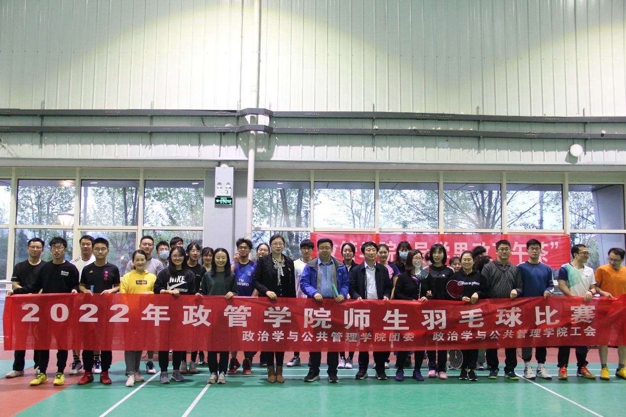 为丰富导学交流形式,搭建导学互动平台,同时提升学院羽毛球运动文化氛围,4月29日晚,政管学院在风雨操场举办了户外文化活动大课堂——师生羽毛球赛。本次比赛共有24名师生参加。盖玉强书记和马奔院长出席了本次比赛的开幕式和闭幕式,并为获奖队伍颁奖。