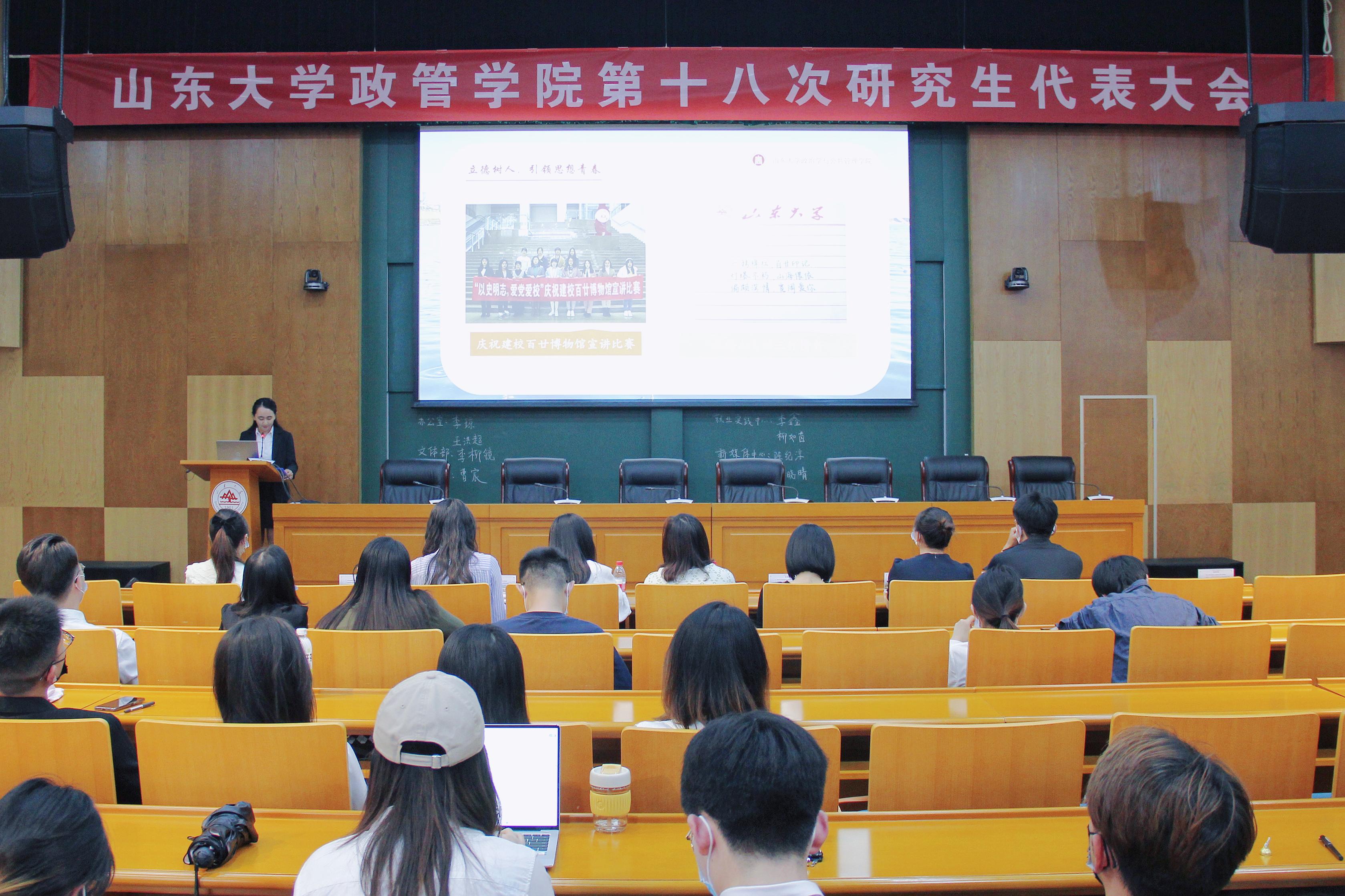 为保障学院研究生会工作的接力赓续,充分发挥研究生会的桥梁纽带作用,同时,继续培养为广大研究生同学服务的新一批高素质学生干部,304永利集团官网入口6月8日晚于华岗苑南楼五层报告厅召开了第十八次研究生代表大会。304永利集团官网入口党委副书记马桂兰、团委书记于玲、2021级研究生辅导员臧丽丽、2020级研究生辅导员白淼出席本次大会,第十七届研究生会全体成员及各年级研究生代表共73人参与本次大会。大会由政管学院就业实践中心主任殷超凡主持。