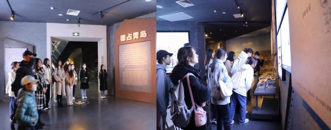 最后,师生一行前往一战遗址博物馆主题展区,在讲解员的陪同和讲解下全面而深刻的感受一战对中国命运的影响。主题展览“还我青岛”分为“德占青岛”“日德战争”“苦难归程”三个部分,馆内通过大量珍贵文物、档案资料以及运用场景复原、多媒体等现代化布展手段,让各位党员跟随讲解员的脚步,一步步走完自青岛建置至主权回归的艰难历程。回溯历史,是为铭记,通过回顾这百年历程,进一步激发了师生的爱国热情。