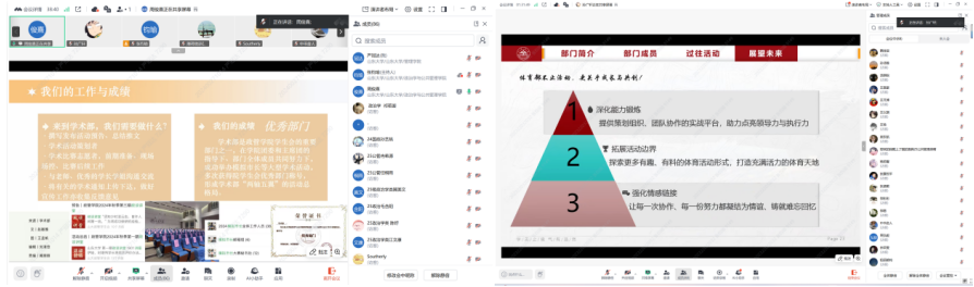 在两位主讲人的分享结束后,政管学院学生会及学生科学技术协会各部门负责人也面向新生进行了宣讲,详细地介绍了各部门的主要职能、工作内容与团队氛围,并向全体新生发出热情邀请。