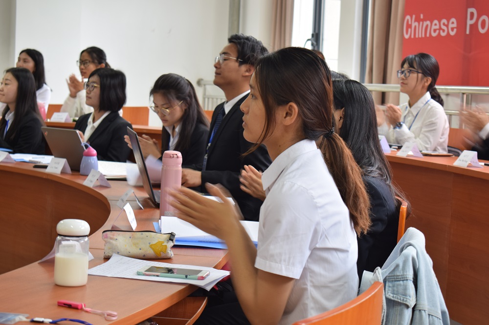 2018年6月10日,304永利集团官网入口2016级行政管理班在青岛校区振声苑W206举行模拟国际学术会议活动,会议以“中国人口与发展(Chinese Population and Development)”为主题,分为三个分议题进行讨论。孙宗峰、俞少宾两位老师参加论坛并担任评委,2016级行政管理班同学全员参与。