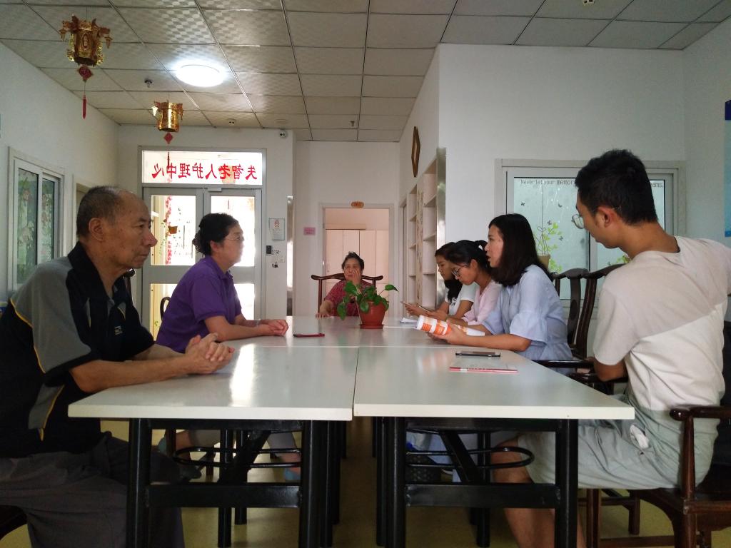 在青岛市设立的“失智专区”中,多种养老模式得以体现,主要有机构养老、社区养老、机构嵌入社区养老等三种模式。为了解“失智专区”试点的建立历程和运营状况,获悉工作开展的整体情况,团队首先前往了市北区民政局,通过对单位负责人的访谈,了解到“失智专区”试点的建立为失智老人提供了更加专业具体的养老服务。在此基础上,团队前往惠康老年公寓、颐佳养老院、福彩四方养老院、市北红十字福利中心、洛阳路郑州社区日间照料中心等七个“失智专区”试点进行实地调研,通过对单位负责人的深度访谈,团队获知了单位床位、失智老人数量、工作人员构成等基本信息,同时也了解了“失智专区”试点建设过程中的政府优惠政策,除此之外,单位负责人也表示当前失智老人养老仍然存在社会保障不足、资金短缺、人力资源匮乏等问题。活动过程中的访谈为团队对于这一问题的质性研究提供充足的材料。