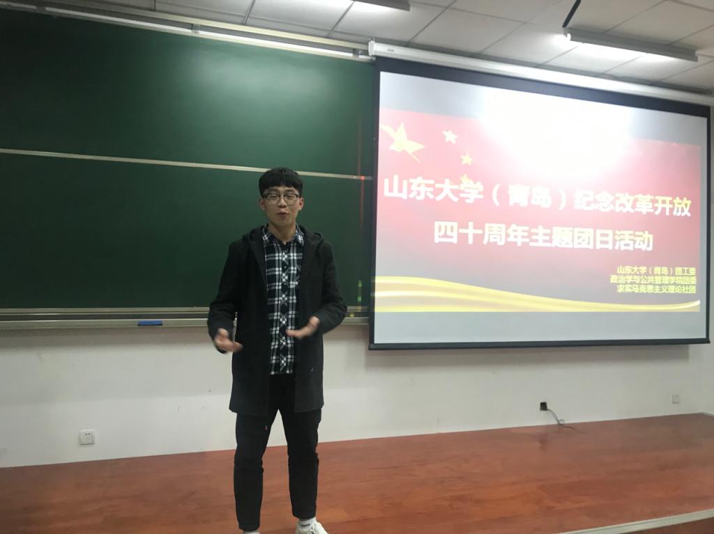 刘宏伟同学也分享了自己的阅读感悟,他表示,“改革开放四十年,我感受最深的是以人为本的治国战略逐渐落实到位”,“人民的生活水平越来越高,人民的日子越过越幸福,是改革开放带领中国翻开了新篇章,进入了新时代”。