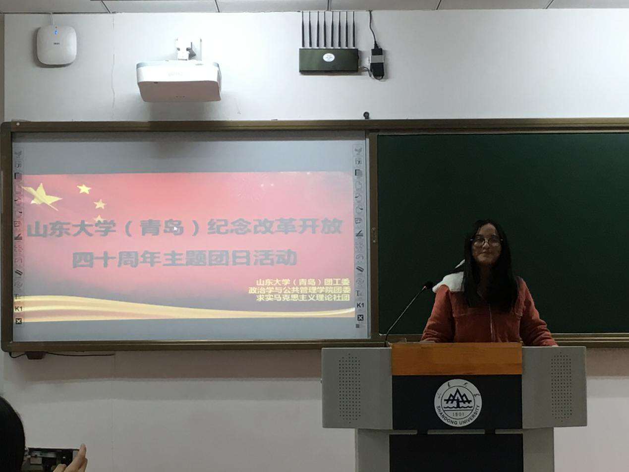 2018年12月7日下午,政管学院2016级政科班团支部在振声苑E202举办纪念改革开放40周年主题团日活动。改革开放的四十年来,中国发生了历史性的沧桑巨变,作为新时代的学子,我们应当如何正确认识改革开放带来的伟大成果,如何回应新时代对于青年的要求与期望,这是本次团会想要探讨的两个问题。