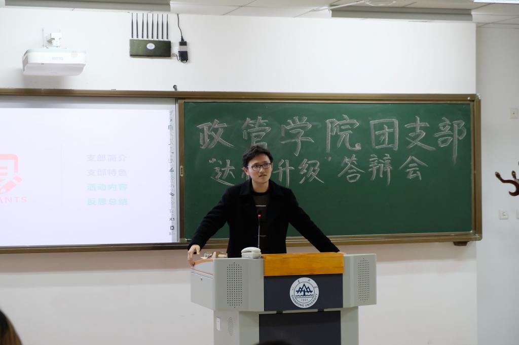 首先,2016级国际政治班团支部进行答辩,他们以“无问西东”为主题,阐释了其思想、热爱、初心与深情。2016级政科班团支部以PPT展示的形式总结其支部的工作,团结温暖的支部氛围给评委和观众们留下了深刻印象。2016级行政管理班团支部运用快闪的新颖形式,将工作成果一一展示,吸引了各位评委和观众的注意力。其后,2016级公共管理班团支部对其工作的成果与不足之处进行了总结,展现了其团支部严谨作风和认真的工作态度。2017级政治班团支部将优美的古诗与人、事、情相关联,绘出独一无二的支部风采,让人耳目一新。其他团支部也就其各方面工作进行展示,顺利完成答辩。