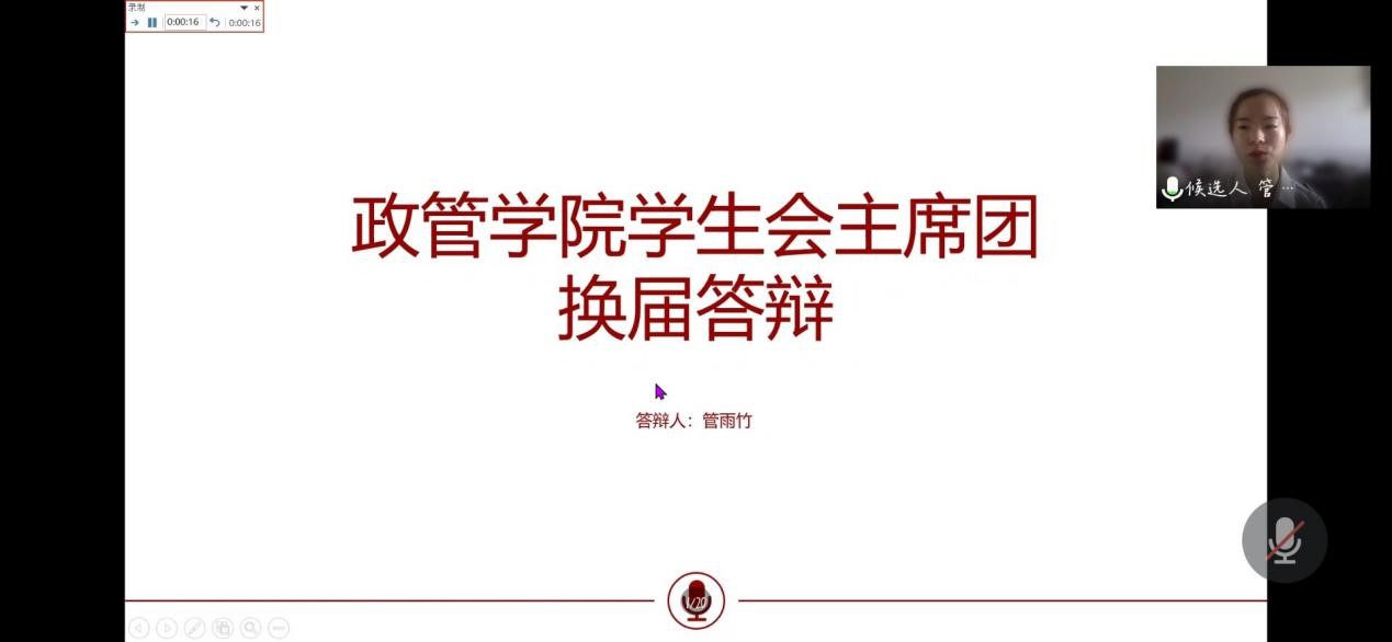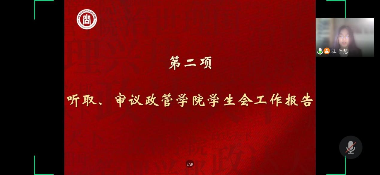 政管学院学生会主席汪千慧正在做工作报告