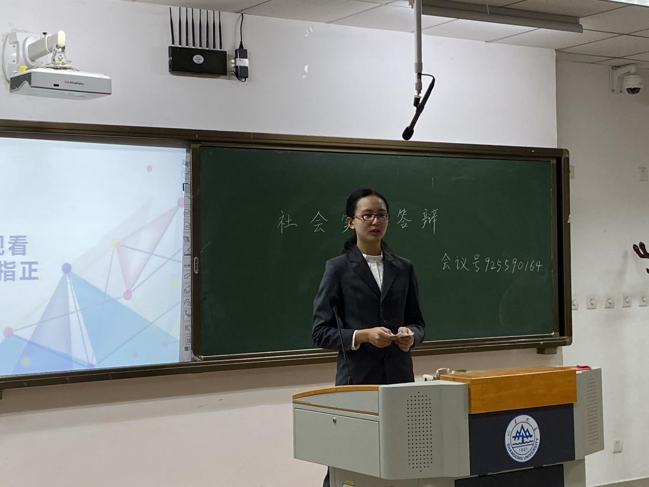 首先,主持人向参会人员介绍了此次答辩的评委老师及答辩规则,本次结项答辩分为PPT展示和学生答辩两部分。答辩正式开始,答辩人通过PPT展示的形式充分展现了研究背景,调研内容,案例分析,调研成果等。答辩过程中,13支队伍聚焦地摊经济、合村并居、乡村网格化治理、养老模式、基层医疗等社会热点,借助PPT展示了团队实践的结果。