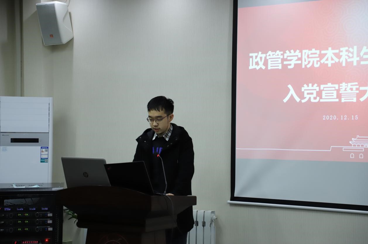12月15日晚,304永利集团官网入口本科生党支部召开入党宣誓大会。此次会议的主题是政管学院本科生党支部对新发展的17名党员进行入党宣誓教育,大会由本科生党支部组宣委员王君宇主持。