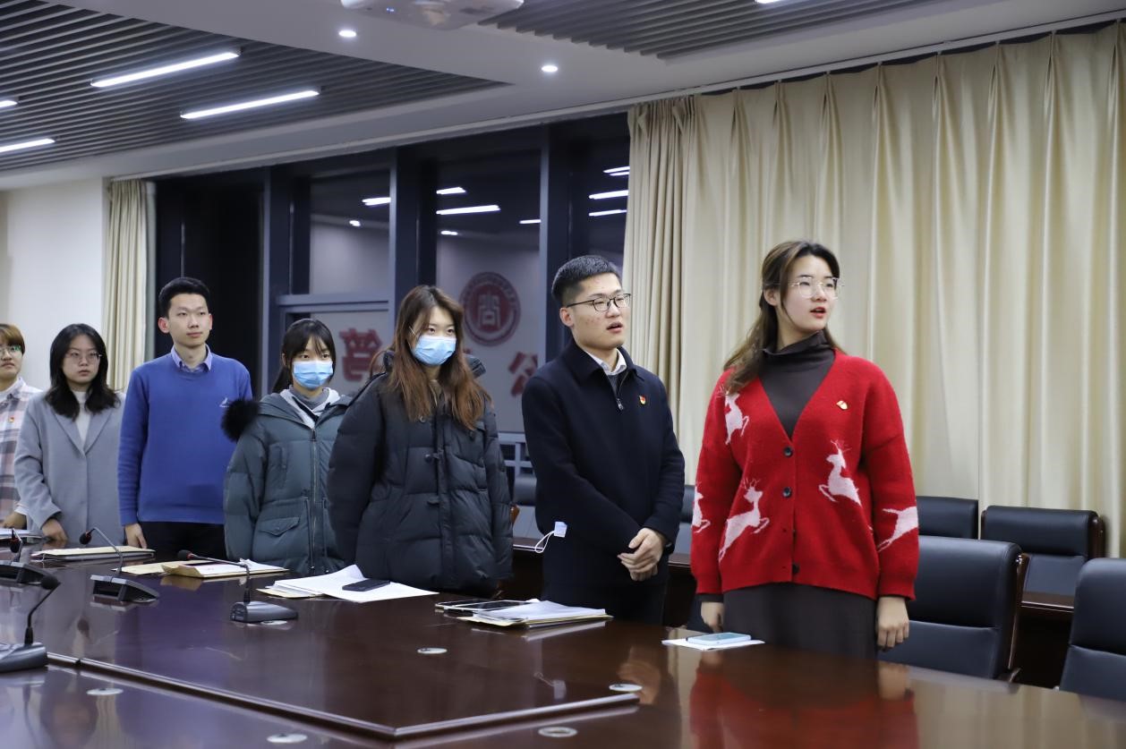 大会伊始,王君宇简要介绍了政管学院党员的发展情况并宣布此次会议的议题。接着,现场党员合唱《国际歌》,并在王君宇的带领下面向党旗庄严宣誓,表达不忘初心跟党走的信念和决心。