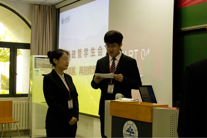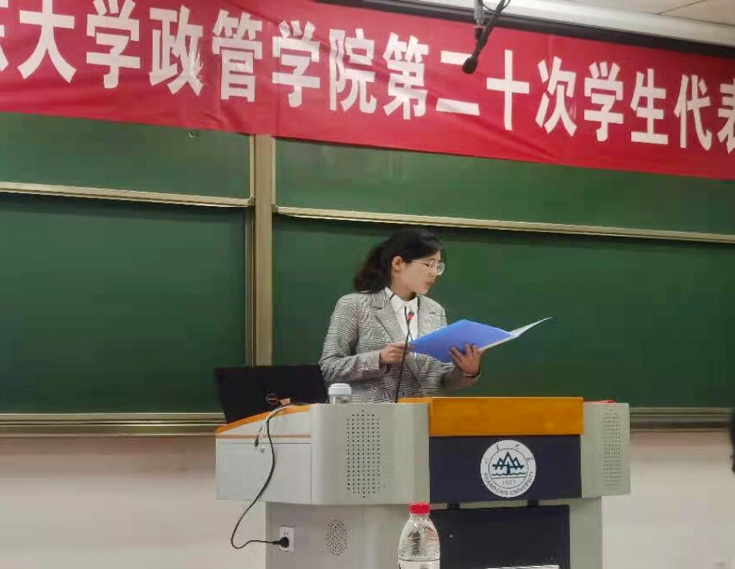 大会首先听取并审议了政管学院第十九届学生会工作报告、部门工作报告和提案情况汇报。第十九届学生会主席侯小凡做了题为《“承家国情怀,秉服务初心” “四个聚焦”推动学生会工作高质量发展》的工作报告,从改革创新、国之大者、五育并举、服务同学四个方面总结了本学年学生会发展的系列成果。各部门部长做部门工作汇报,从工作回顾和反思展望两部分入手展示部门工作情况。大会以举手表决的形式通过了政管学院第十九届学生会工作报告。