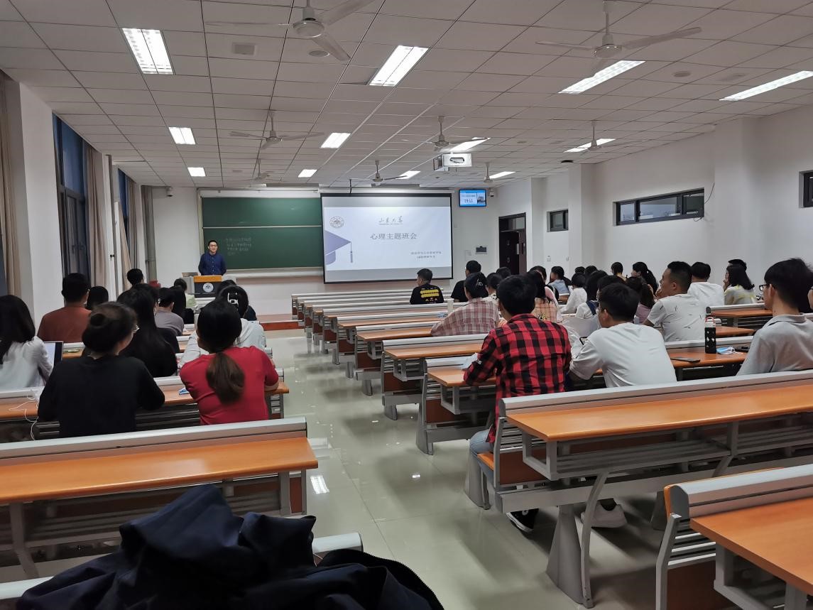 本次活动结合学院研究生毕业年级的实际情况,以线下主题班会、线上同步直播的方式开展。班会伊始,学院2018级研究生辅导员李汉烨介绍了毕业生在毕业季和就业之初在心理方面出现的普遍问题,强调心理健康的重要性,并介绍有效的自我发现和调节措施,帮助同学们以积极健康的心态顺利度过毕业季,完成从校园到社会的适应性过渡。