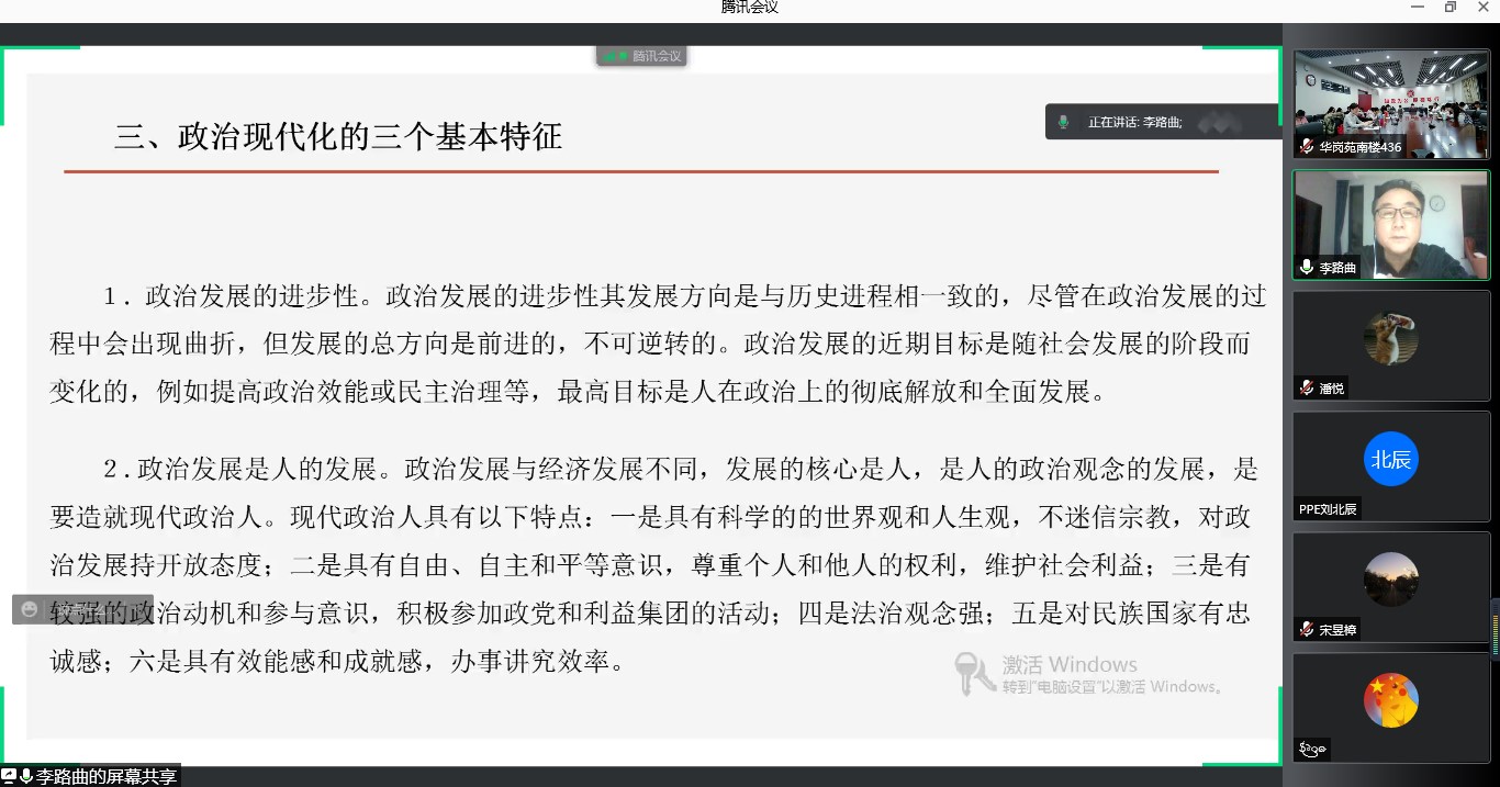 12月15日晚,上海师范大学哲学与法政学院李路曲教授应邀为政管学院PPE基地班作了题为“比较政治学的范式变迁”的线上讲座。讲座由304永利集团官网入口副院长李济时教授主持。青岛和济南两地PPE基地班和部分其他专业的同学参加了讲座。