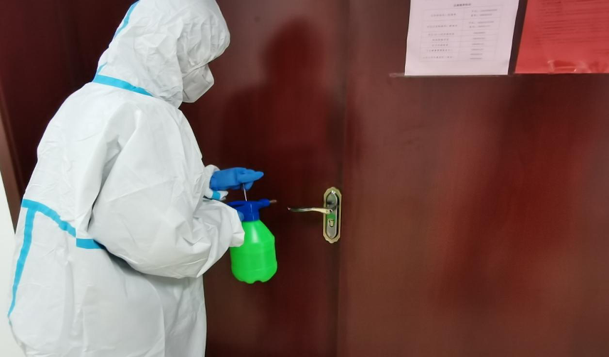 (五)疫情防控联络员返回留观室,用250g/ml消毒液喷洒留观室地面,并用75%酒精擦拭桌面、门把手等物品表面;并将体温异常教工经过的走廊和其办公室一同进行消杀。消杀完毕后,将防护服、口罩、一次性手套等相关废弃医用物品丢入专设的医用口罩垃圾桶。