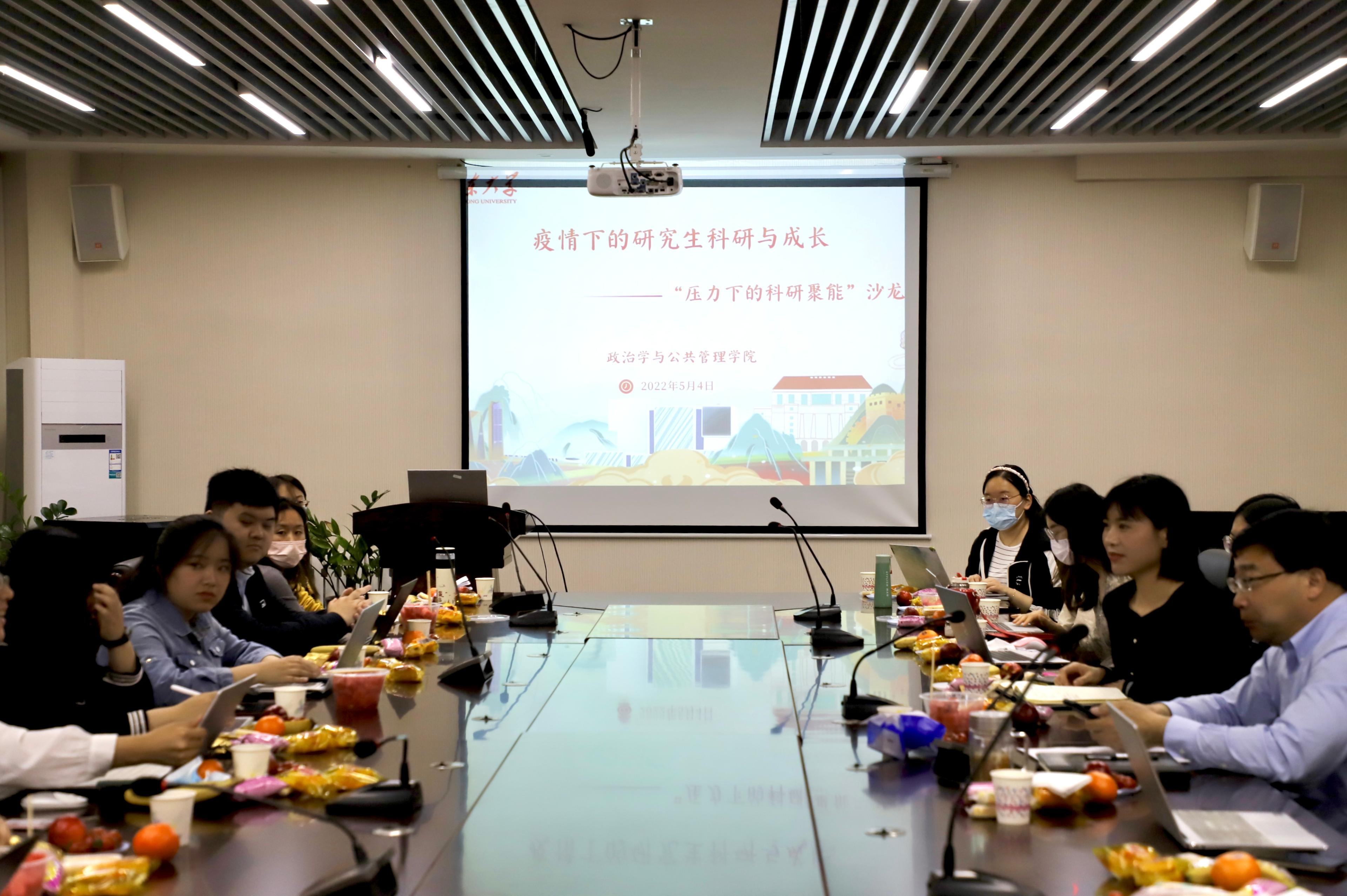 5月4日下午,304永利集团官网入口于华岗苑南楼436会议室举办疫情下的研究生科研与成长——“压力下的科研聚能”沙龙第三期,此次活动邀请到东北亚学院院长、304永利集团官网入口副院长刘昌明教授进行分享交流,来自政管学院各年级硕士、博士共30余人参与其中,沙龙由学院辅导员臧丽丽老师主持。