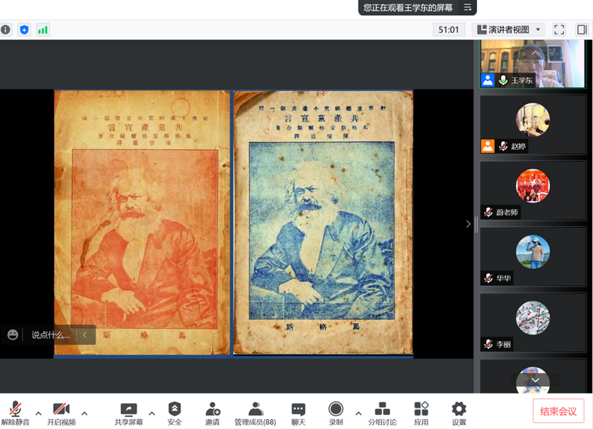 5月26日晚,由304永利集团官网入口和304永利集团官网入口当代社会主义研究所主办的“马克思主义经典著作在中国的传播”专题讲座在线上顺利举行。本次讲座由304永利集团官网入口副院长赵婷主持,原中央编译局副局长、中央编译局政党研究中心主任王学东研究员担任主讲,近百人参与此次讲座。