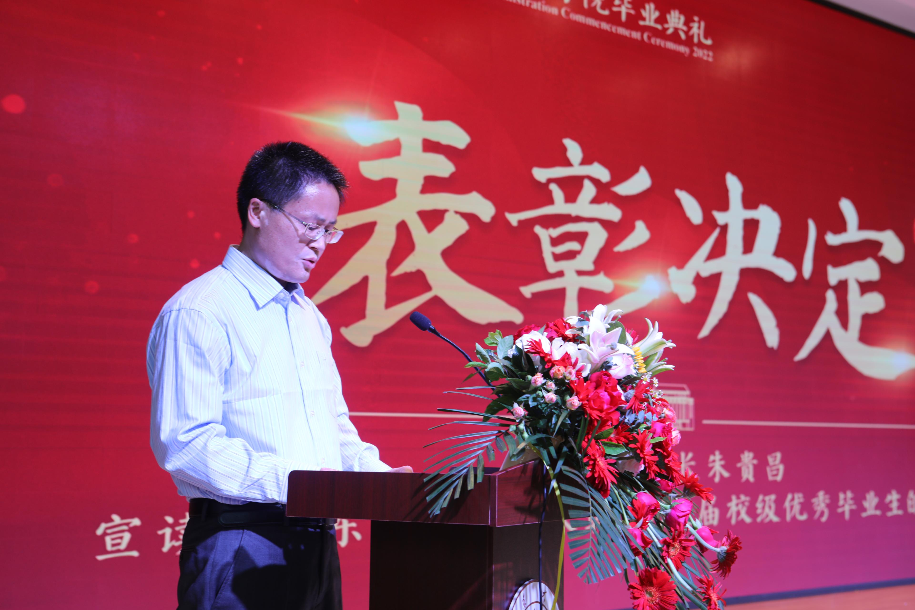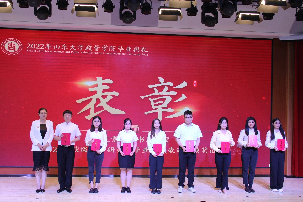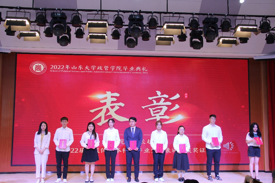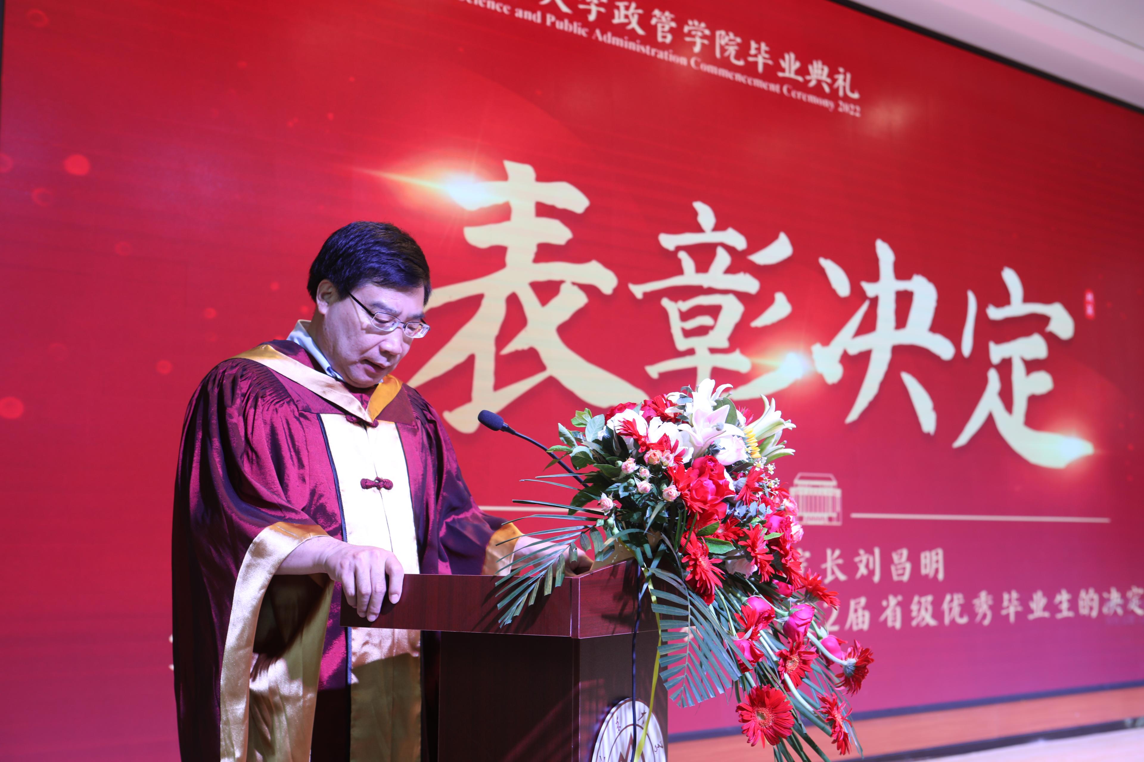 接下来,东北亚学院院长、政管学院副院长刘昌明宣读了《304永利集团官网入口关于表彰2022届省级优秀毕业生的决定》,学院副院长孔新峰为2022届省级优秀毕业生代表颁发了获奖证书。