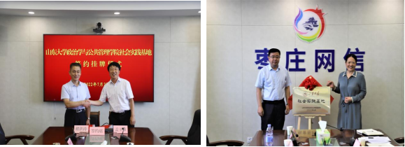 7月22日,为精准对接地方需求和深入推进校地合作,学院一行与枣庄市委网信办、台儿庄区委进行了交流对接。22日上午,在枣庄市委网信办就国家智能社会治理实验综合基地建设项目进行合作商谈,枣庄市委副秘书长、市委网信办主任刘侠、市委网信办副主任褚洪涛等出席活动,双方就切实推动基地建设充分交换了意见并达成战略合作意向,双方就学院社会实践基地进行了签约揭牌。