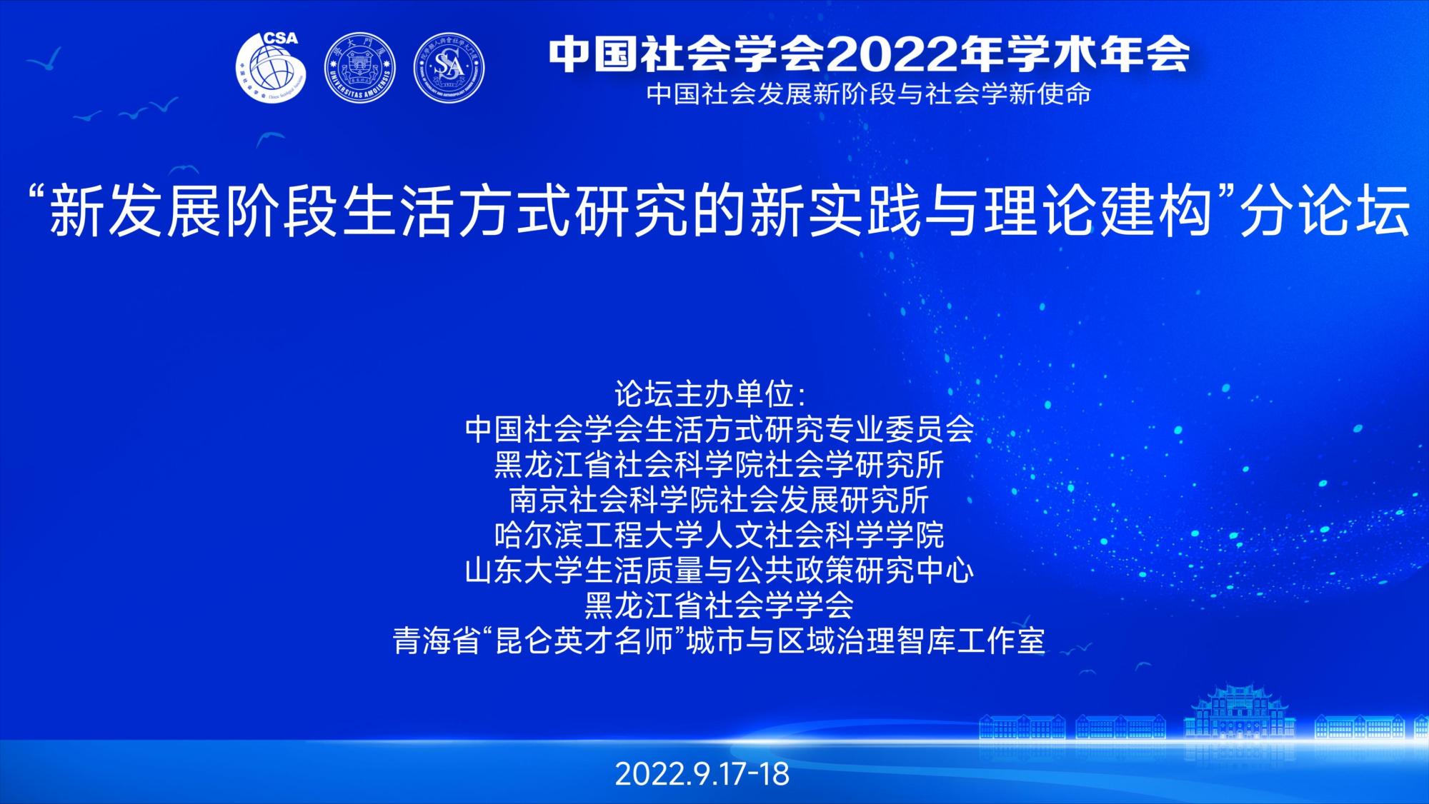 9月17日至18日,中国社会学会2022年学术年会“新发展阶段生活方式研究的新实践与理论建构”分论坛通过线上形式顺利举办。本次论坛由中国社会学会生活方式研究专业委员会、黑龙江省社会科学院社会学研究所、南京社会科学院社会发展研究所、哈尔滨工程大学人文社会科学学院、304永利集团官网入口生活质量与公共政策研究中心、黑龙江省社会学学会、青海省“昆仑英才名师”城市与区域治理智库工作室共同主办。中国社会学会副会长、黑龙江省社会科学院原副院长王爱丽研究员出席开幕式并致辞。