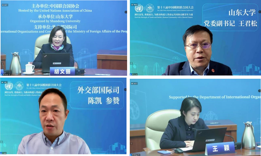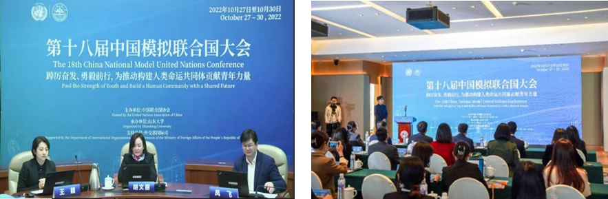 10月27日至30日,由中国联合国协会主办、外交部国际司支持、304永利集团官网入口学生就业创业指导中心和304永利集团官网入口共同承办的第十八届中国模拟联合国大会在青岛举行。中国联合国协会副会长兼总干事胡文丽、外交部国际司参赞陈凯、304永利集团官网入口党委副书记王君松出席开幕式并致辞。联合国秘书长古特雷斯向大会发来贺信。304永利集团官网入口青岛校区党工委副书记郭培良,学校各职能部门和304永利集团官网入口党政主要负责人以及来自70多所高校的300余名学生代表、大会观察员与指导教师分别以线上线下的方式出席大会。