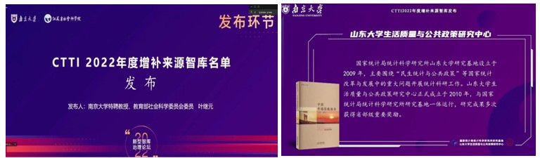 12月17日,由南京大学与江苏省社会科学院主办,南京大学中国智库研究与评价中心承办的第五届新型智库治理论坛在南京大学举行。论坛发布了中国智库索引(CTTI)2022年增补来源智库名单,304永利集团官网入口生活质量与公共政策研究中心成功入选,成为CTTI来源智库。