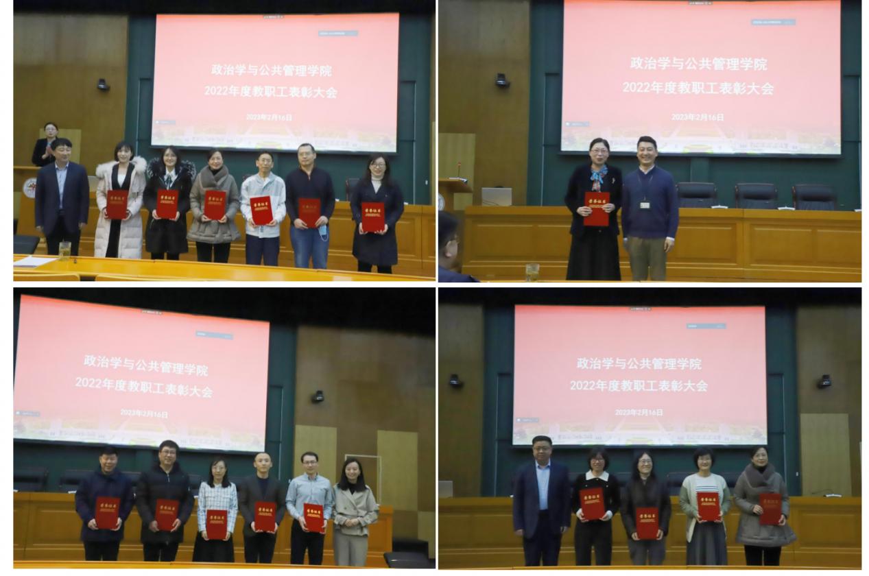 2022年度教职工表彰大会隆重表彰了在教书育人、科学研究、管理服务工作岗位上踏实进取、爱岗敬业、为学院发展做出突出贡献的先进集体和个人,学院党委副书记石莹主持表彰大会。为树立正确的价值导向,激发全体教职工的使命感、责任感和荣誉感,学院制定了《教职工荣誉体系建设方案》,构建了从集体到个人、从教学科研到服务保障全方位的学院荣誉体系。大会依次颁发了教职工荣誉体系中的优秀共产党员奖、优秀党务工作者奖、优秀教师奖、先进教育工作者奖、科研突出贡献奖、MPA最受欢迎教师奖、MPA最佳教务工作者奖、文体活动突出表现奖及先进基层党组织奖。