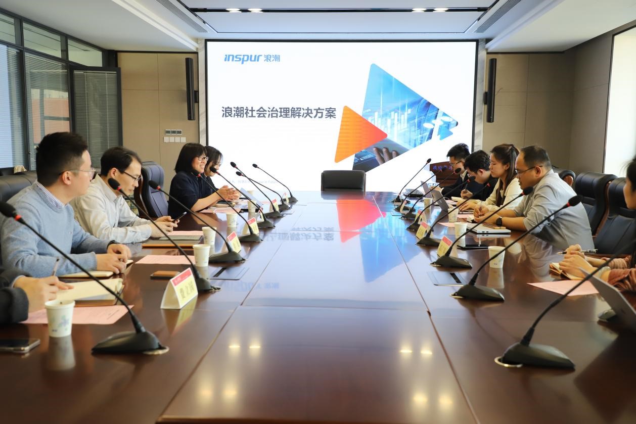 盖玉强从学院师资队伍、学生培养、科研成果、教学管理等多方面介绍了政管学院的基本情况。楼苏萍副教授介绍了公共管理系专业设置及人才培养情况,着重介绍了与浪潮集团软件科技工作相关的“公共管理+信息”双学位班。俞少宾介绍了304永利集团官网入口智慧国家治理文科实验室的建设情况。随后,浪潮集团各位专家介绍了浪潮科技有限公司的基本情况,详细介绍了浪潮集团在大数据社会治理领域的业务,即通过“数智结合”规划行业内软件产品与解决方案。