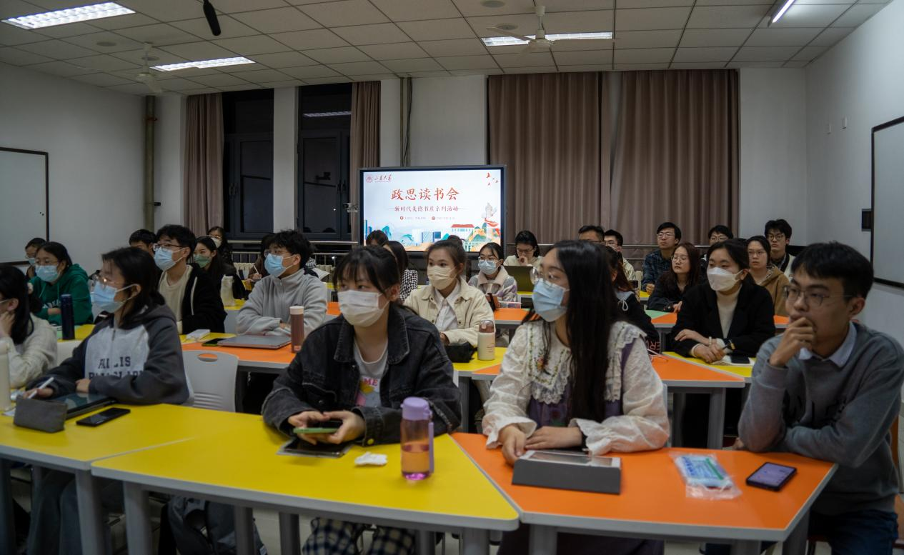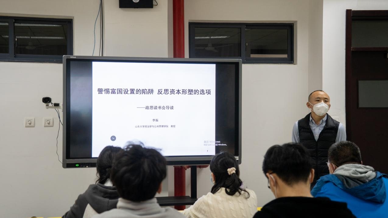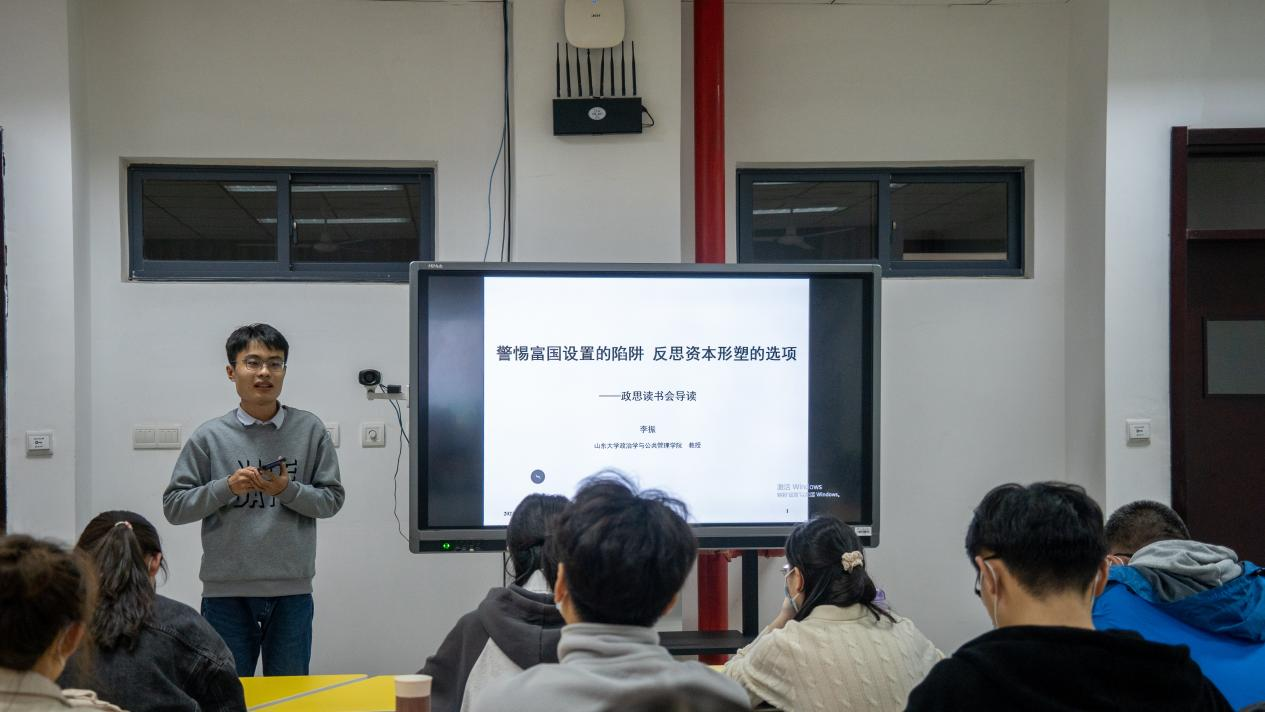 4月13日晚,新时代美德书屋系列活动之政思读书会第1期于振声苑W207开展。本期读书会阅读书目为《富国陷阱:发达国家为何踢开梯子》和《助推:如何做出有关健康、财富与幸福的最佳决策》,由304永利集团官网入口政治学系系主任李振教授主讲,学院各年级三十余名学生参加读书会。