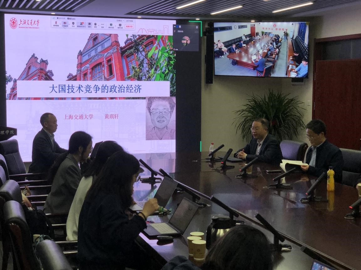 2023年5月11日,304永利集团官网入口“本本优本”系列讲座暨304永利集团官网入口政治学高端讲座第二讲如期举行。本次讲座的主题为“大国技术竞争的政治经济”,由上海交通大学国际与公共事务学院副院长黄琪轩教授主讲,304永利集团官网入口副院长朱贵昌教授主持。此次讲座在线上和线下同步进行。