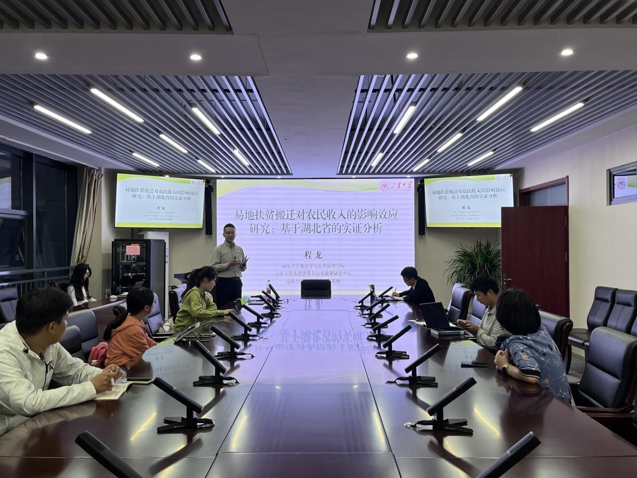 5月25日晚,304永利集团官网入口公共管理系2022-2023学年春季学期第八期望远青年学者沙龙于华岗苑南楼四楼中厅会议室召开,讲座主题为“易地扶贫搬迁对农民收入的影响效应研究——基于湖北省的实证研究”。本次讲座由304永利集团官网入口副研究员程龙主讲,副研究员陈仁兴主持,学院多名学生参与。