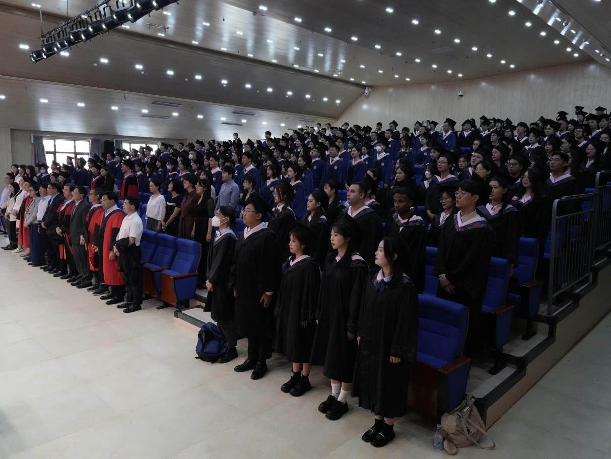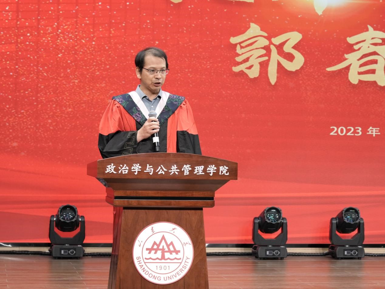 在学位授予仪式环节,政管学院学位评定委员会委员马奔教授、刘昌明教授、王学玉教授、郭春生教授、孙宗锋教授为全体毕业生授予学位证书和毕业证书。2023年政管学院共有本硕博毕业生798名,其中本科毕业生135名、硕士研究生644名、博士研究生19名。最后,伴随着山大校歌的悠扬旋律,2023年政管学院毕业典礼暨学位授予仪式圆满完成。