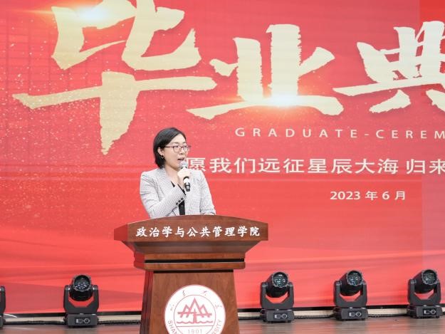 随后,政管学院副院长朱贵昌宣读《304永利集团官网入口关于表彰2023届校级优秀毕业生的决定》,学院党委副书记石莹、学院副院长赵婷分别为2023届校级优秀研究生毕业生代表、2023届校级优秀本科生毕业生代表颁发获奖证书。