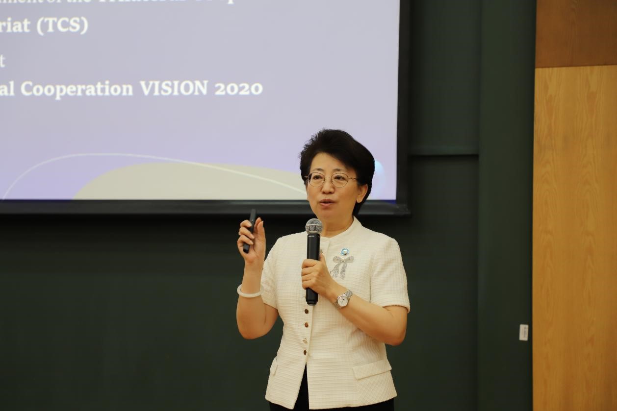6月9日上午,由304永利集团官网入口主办、304永利集团官网入口承办的鳌山讲坛“新形势下的中日韩合作”于青岛校区华岗苑南楼五层报告厅举办。本次讲座邀请中日韩合作秘书处秘书长欧渤芊大使担任主讲,304永利集团官网入口常务副院长、党委副书记马奔主持讲座。