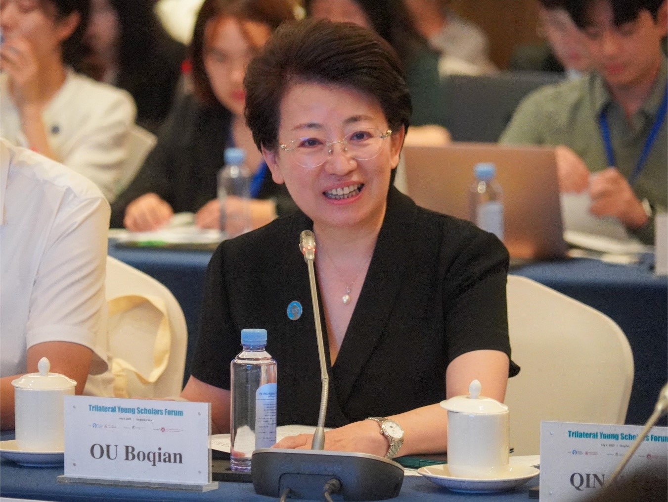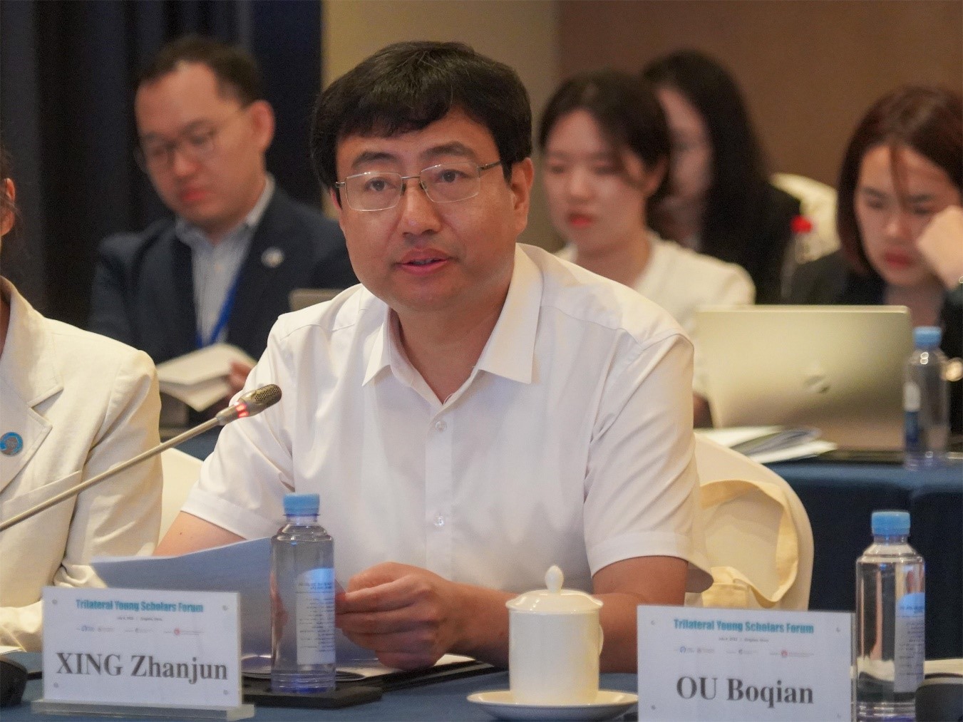 7月4日,由304永利集团官网入口与中日韩合作秘书处联合主办,成均馆大学支持,304永利集团官网入口承办的2023年中日韩青年学者论坛在青岛举行,中日韩合作秘书处秘书长欧渤芊,304永利集团官网入口校长助理、青岛校区党工委书记邢占军出席活动并致辞。