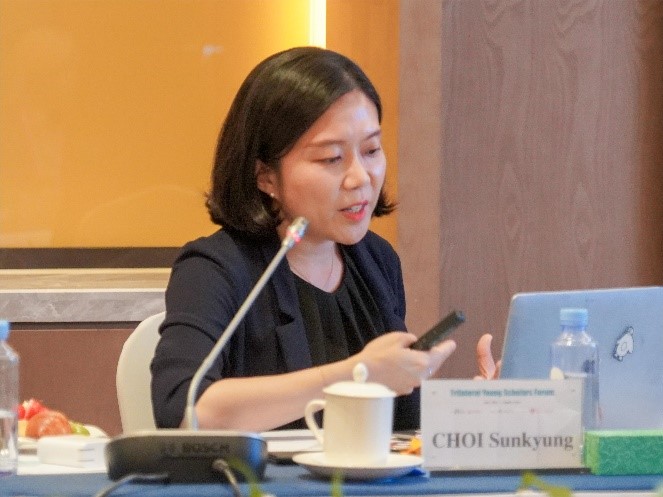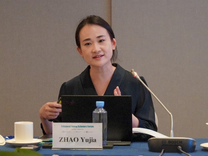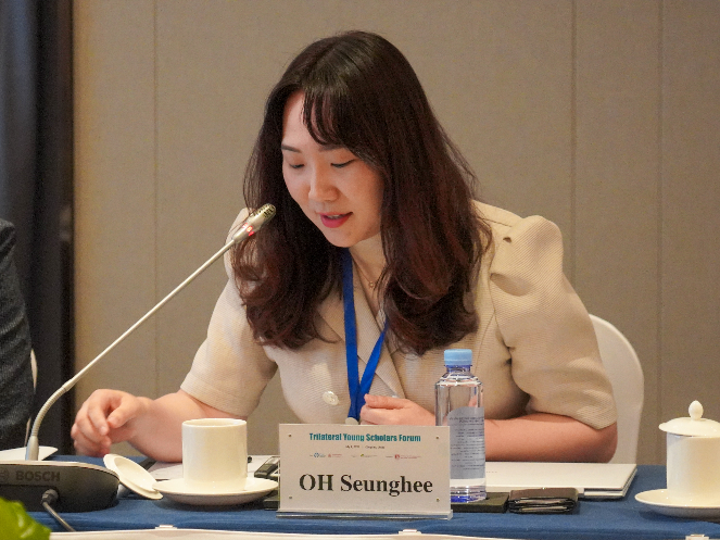 欧渤芊在致辞中表示,中日韩青年学者论坛汇聚了三国年轻一代中极富潜力和创新精神的学者,为了培养新一代中日韩关系的引领者,中日韩合作秘书处从2017年开始举办中日韩青年学者和研究人员的交流活动,本次论坛以“相互认知”为主题,旨在承认价值观差异的同时强调合作和相互依存的重要性,从而建立持久稳定的三国关系,并维护整个地区的和平、稳定与繁荣。虽然中日韩之间有着复杂的地缘政治因素和历史背景,但却保持了令人印象深刻的和平与稳定,正是因为三国都倾向于合作而不是对抗。她强调,在过去的12年里,中日韩合作秘书处一直致力于维持东北亚的和平,在所有可能的领域开展合作,即使面对挑战也绝不能忽视已经取得的进展和进一步合作的潜力,要始终坚定增进共识、互利共赢的步伐。她表示,希望本次论坛的青年学者们能够就论坛主题充分交流想法和建议,让今天的研讨成为共同前进的里程碑,为进一步的相互理解与合作铺平道路。我们的过去虽然不能改变,但是究竟要走向什么样的未来,掌握在我们自己的手中。
