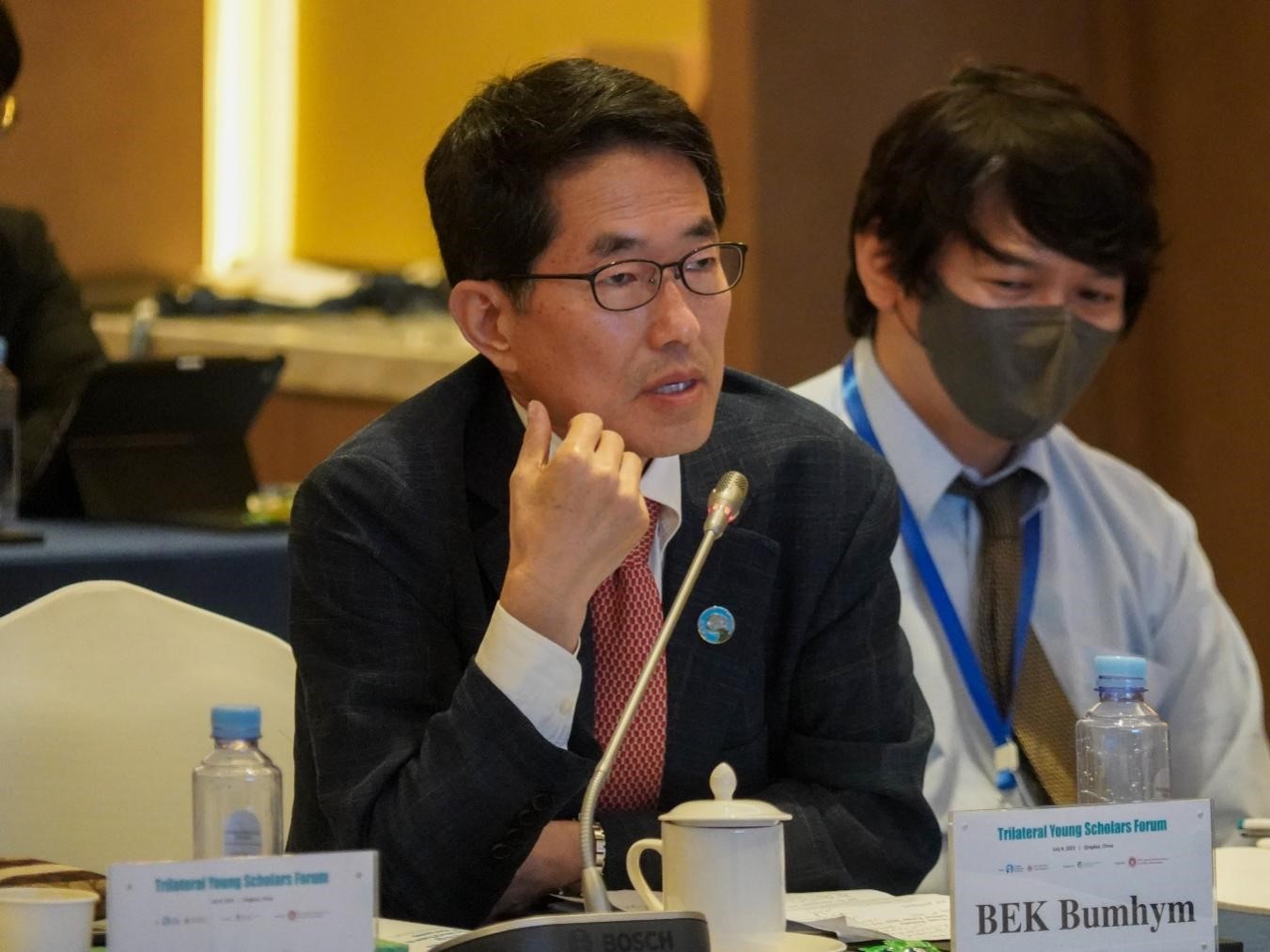 中日韩合作秘书处副秘书长白范钦在闭幕式致辞中表示,青年学者论坛是一项出色的倡议,为青年专家们提供了平台,为了中日韩的未来而开展交流合作。他充分肯定了与会年轻学者的研究成果的深刻和发人深省,并表示这些政策建议将按照论坛安排由中日韩合作秘书处进行编译,提交各国政府,鼓励学者们克服困难,为塑造共同的繁荣而努力。