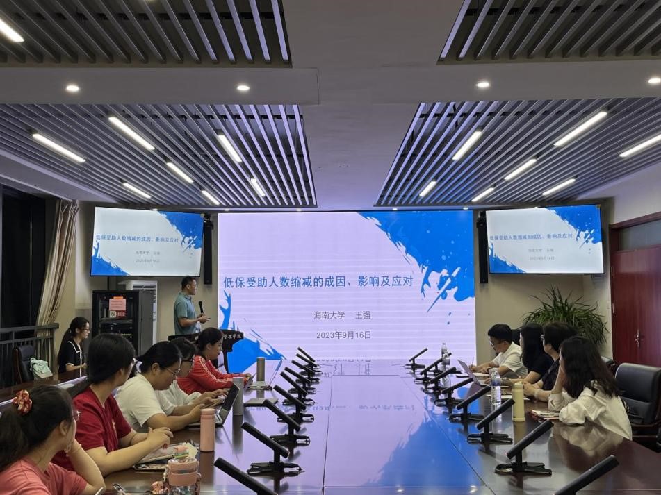9月16日晚19:30-21:00,304永利集团官网入口公共管理系2023-2024学年秋季学期第二期望远青年学者沙龙于华岗苑南楼四楼中厅会议室举办,讲座主题为《最低生活保障受助规模持续缩减的成因、影响及应对》。本次讲座由海南大学公共管理学院王强副教授主讲。学院陈仁兴副研究员主持讲座。