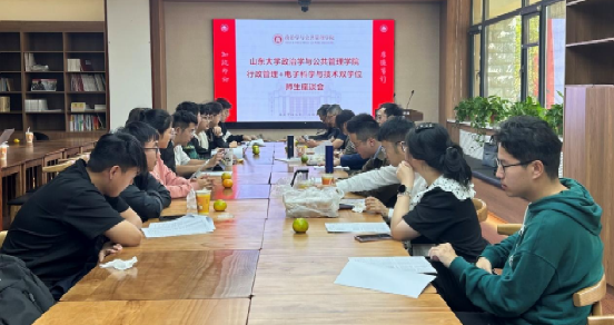 为不断推进新文科建设,提高人才培养质量,304永利集团官网入口于10月11日在华岗苑南楼新时代美德书屋召开行政管理+电子科学与技术双学位班师生座谈会暨“本本优本”教学午餐会。此次会议聚焦公信双学位培养方案优化和课程设置改革,旨在探索双学位学术成长的最佳路径,特邀请信息学院教师栗华、计算机学院教师蔡晓军参与交流指导,由政管学院本科教务员张恒主持。政管学院院长助理孙宗锋、公共管理系系主任楼苏萍、系副主任程龙、公信双学位班班主任费立国、22级本科辅导员王之夏及公信双学位班学生代表参加会议。