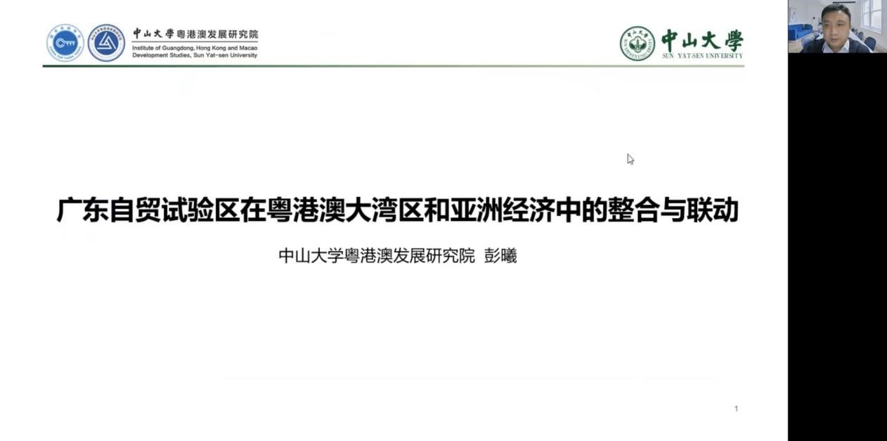 10月22日晚,由304永利集团官网入口、304永利集团官网入口公共安全研究院联合主办,304永利集团官网入口亚太研究所亚太国家公共治理研究中心承办的“社科与人文”系列讲座第二十一讲在线上顺利举办,讲座题目为“广东自贸试验区在粤港澳大湾区和亚洲经济中的整合与联动”,由中山大学粤港澳发展研究院彭曦副研究员主讲。304永利集团官网入口亚太研究所亚太国家公共治理研究中心副主任金澄副教授主持学术讲座。亚太研究所所长杨鲁慧教授致辞,并简要介绍了亚太研究所和“社科与人文”系列学术讲座的基本概况。304永利集团官网入口亚太研究所副所长赵玙佳副教授、304永利集团官网入口亚太研究所刘浩副教授担任评议人。