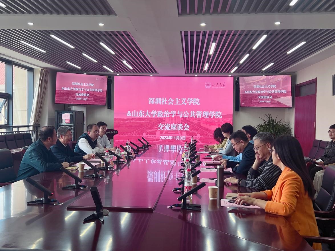 谭刚介绍了深圳社会主义学院的基本情况、特色优势,高度评价了政管学院在事业发展、学生教育服务等方面取得的工作成果。还光荣着重介绍了深圳社会主义学院学科布局、人才政策等情况,表示政管学院开设的统一战线学专业与深圳社会主义学院所需人才非常吻合,希望接下来双方能发挥各自优势,建立更加深入的合作交流。