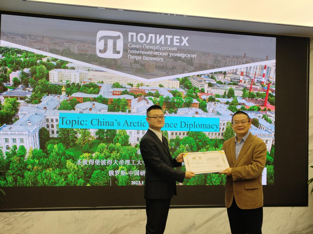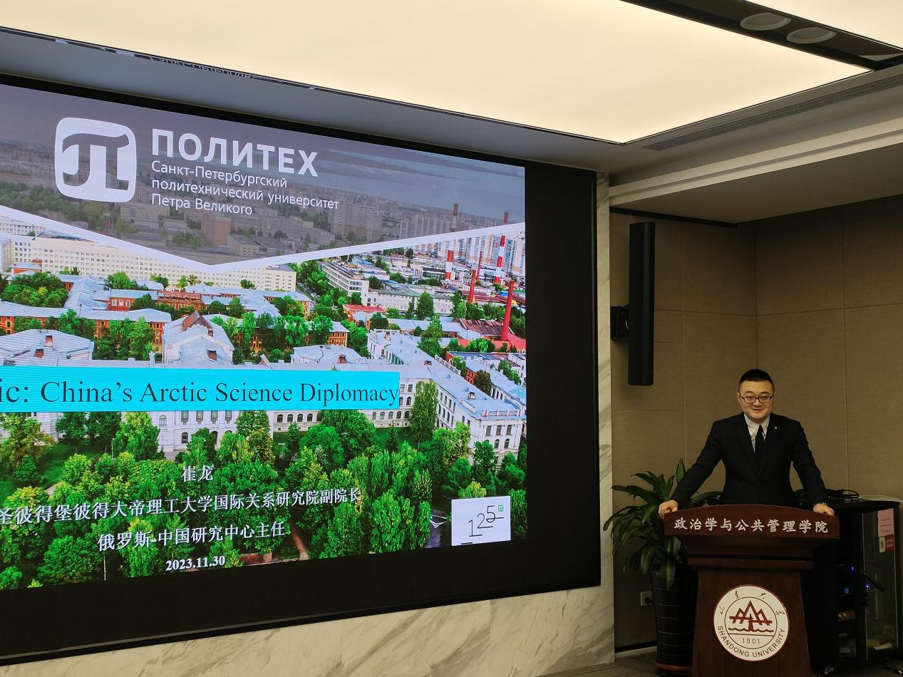 11月30日晚,由304永利集团官网入口、304永利集团官网入口上海合作组织研究院、304永利集团官网入口公共安全研究院联合主办的“合作与发展”系列讲座第四期在华岗苑南楼五楼中厅会议室顺利举办。本期讲座以“中国北极科学外交”为主题,圣彼得堡彼得大帝理工大学国际关系研究院副院长、俄罗斯—中国研究中心主任崔龙博士主讲。304永利集团官网入口特聘教授、上海合作组织研究院执行院长盛力教授担任讲座主持。