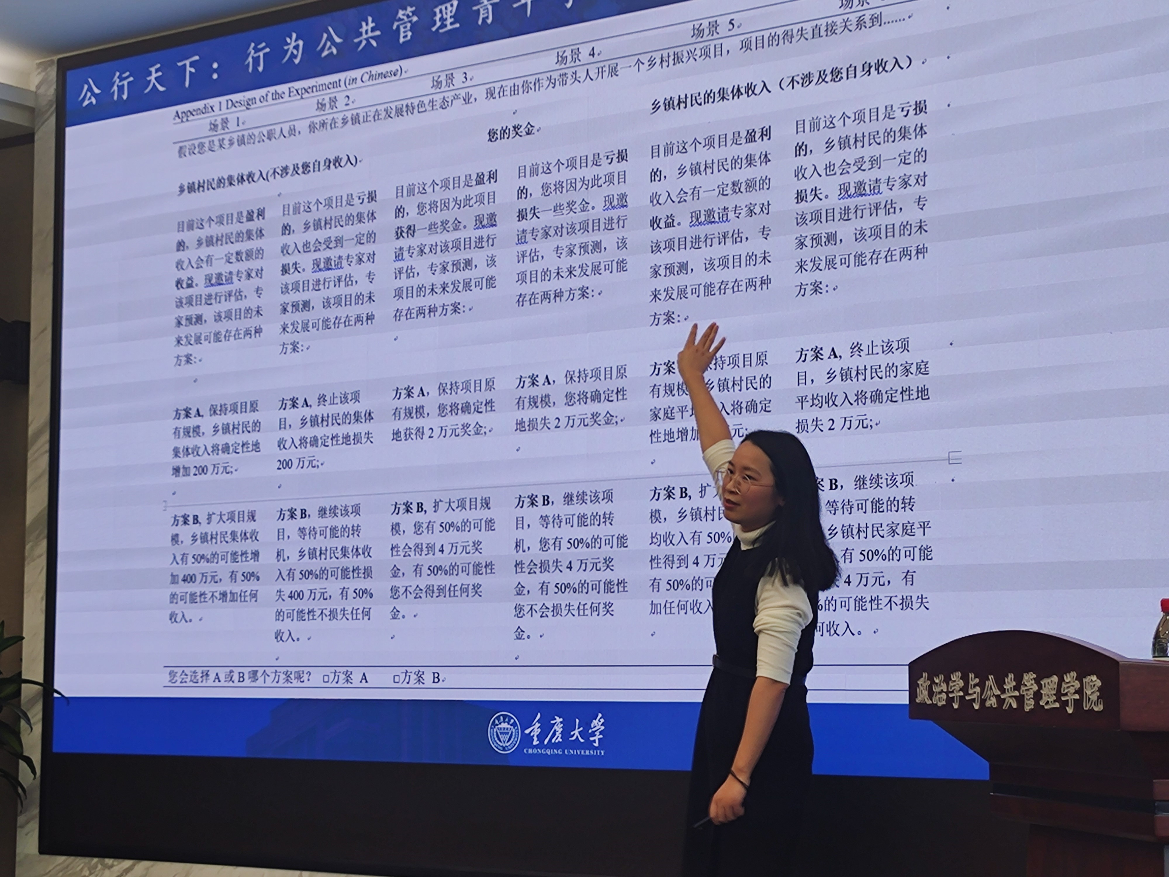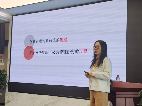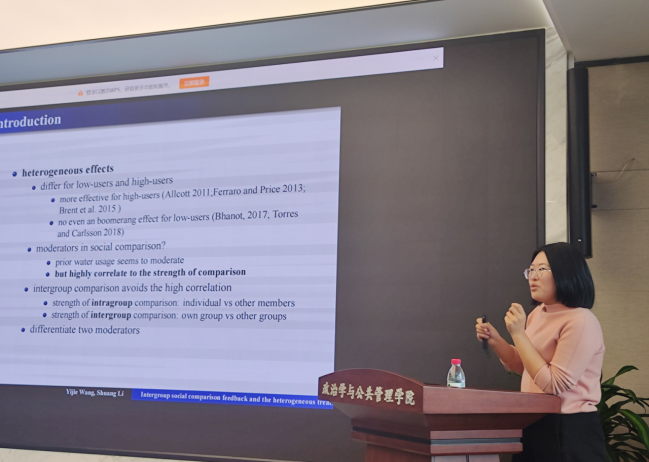 助推理论的应用研究也在本次论坛中得到展现,如重庆大学张金凤老师在“公务员决策风险偏好的框架效应研究”为题的会议报告中,区分了目标、得失、特征等框架的异同,并深入探究语言表达对农民行为的影响,充分展示了干预材料如何精准体现研究框架。华中科技大学李晓倩老师就如何兼顾外部“可信”与内部“可靠”问题,进行了“实验方法在公共管理研究中的应用:进展与反思”为题的报告,指出实验研究要保证样本的随机、情境的多样、数据类型的明确外,还要注意实验伦理,从而增强研究的可复制性和结果解读有效性。湖南大学刘盼老师“化压力为动力:工作压力对基层公务员变革担当行为的影响机制探讨”的报告,聚焦了“变革中的现实环境”和“压力下的消极不作为”问题,着重分析变革担当行为、工作压力、印象管理、公共服务动机等变量间的作用关系,并提出相应的职责设置、岗位评估、思想教育等对策建议。此外,304永利集团官网入口王乙杰老师作了题为“Intergroup social comparison feedback and the heterogeneous treatment effects:a survey experiment to reduce water consumption”的报告,主要研究组间比较信息对居民节水意愿的影响,发现在提供组间比较信息时居民节约用水意愿明显提高,还分析了用水习惯和干预信息的强度对干预结果的调节作用。