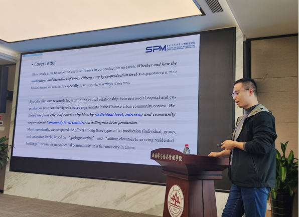 华东政法大学杨帆老师作了题为“饱食思报:争议性应急监管处罚的社会回应研究——一项调查实验”报告,认为在更深层的政民互动问题上,当前有关民众策略性反馈、组织潜力、监管感知、执法合法性的研究方法、框架和要素的分析还需持续探索。华东师范大学范洋洋老师结合长期在社区的观察,进行了“Residents’ community identity, community empowerment, and willingness to co-production: Evidence from a survey experiment in China”为题的汇报,分析个体、小组和集体合供在中国场景下的表现和效果,在分析社区认同、社区赋权和合作意愿相互作用后建议相关部门加强信息公开和保证公众参与。最后,304永利集团官网入口李爽老师题为“不同说服方式对公民健康饮食意愿的影响——一项跨文化研究”的报告,阐述了该助推在本土荷兰人和移民群体中的文化调节效应。