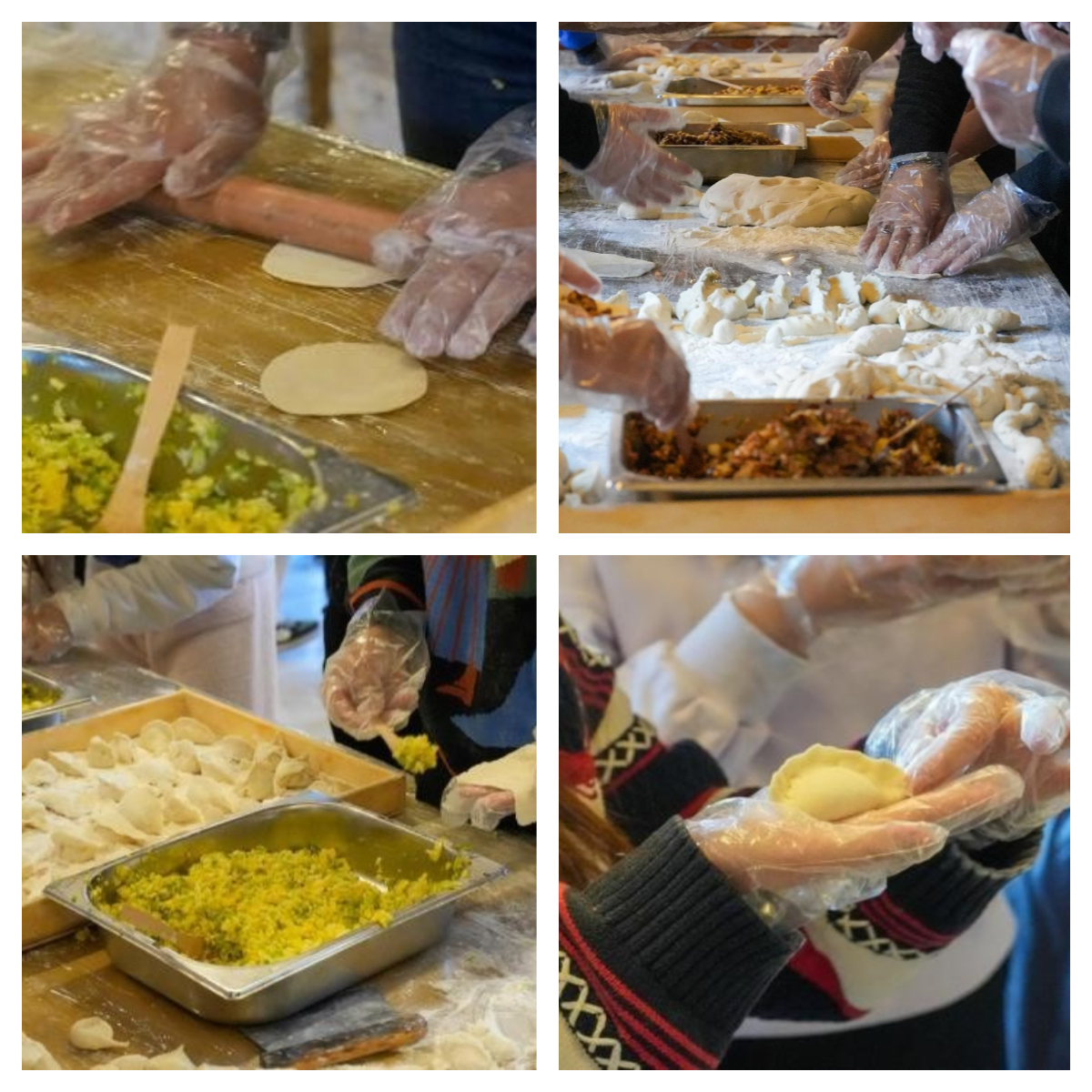 在包饺子环节,同学们,纷纷挽起袖子,和面、擀皮、包馅,每一个环节都充满了欢声笑语。虽然有的同学手法生疏,但大家互相帮助,交流着包饺子的心得和技巧,场面十分温馨。