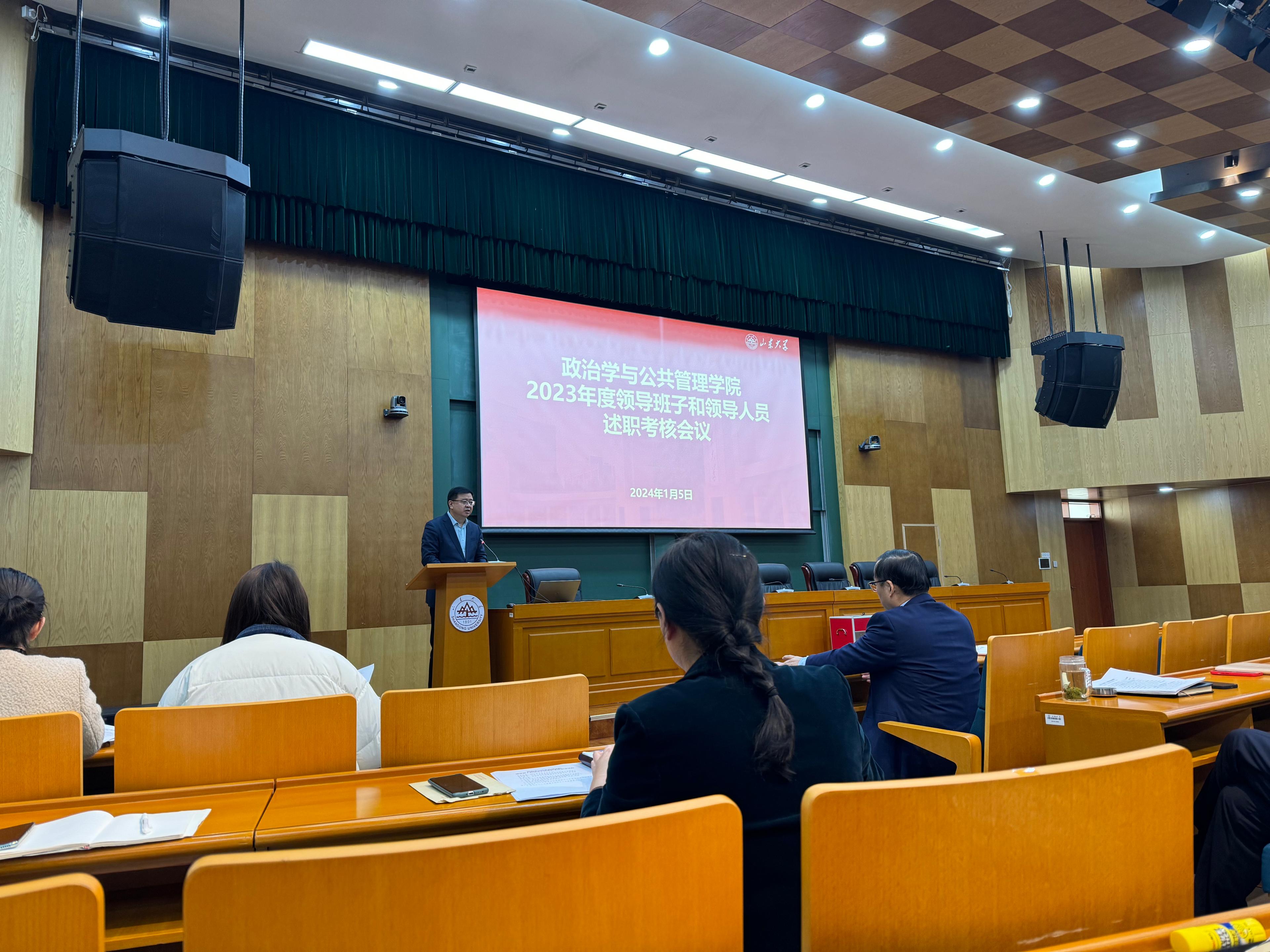 1月5日上午,304永利集团官网入口2023年度领导班子和领导人员述职考核会议于青岛校区华岗苑南楼五层报告厅举行。政管学院领导班子成员及全院教职工参加会议,会议由学院党委书记李海燕主持。